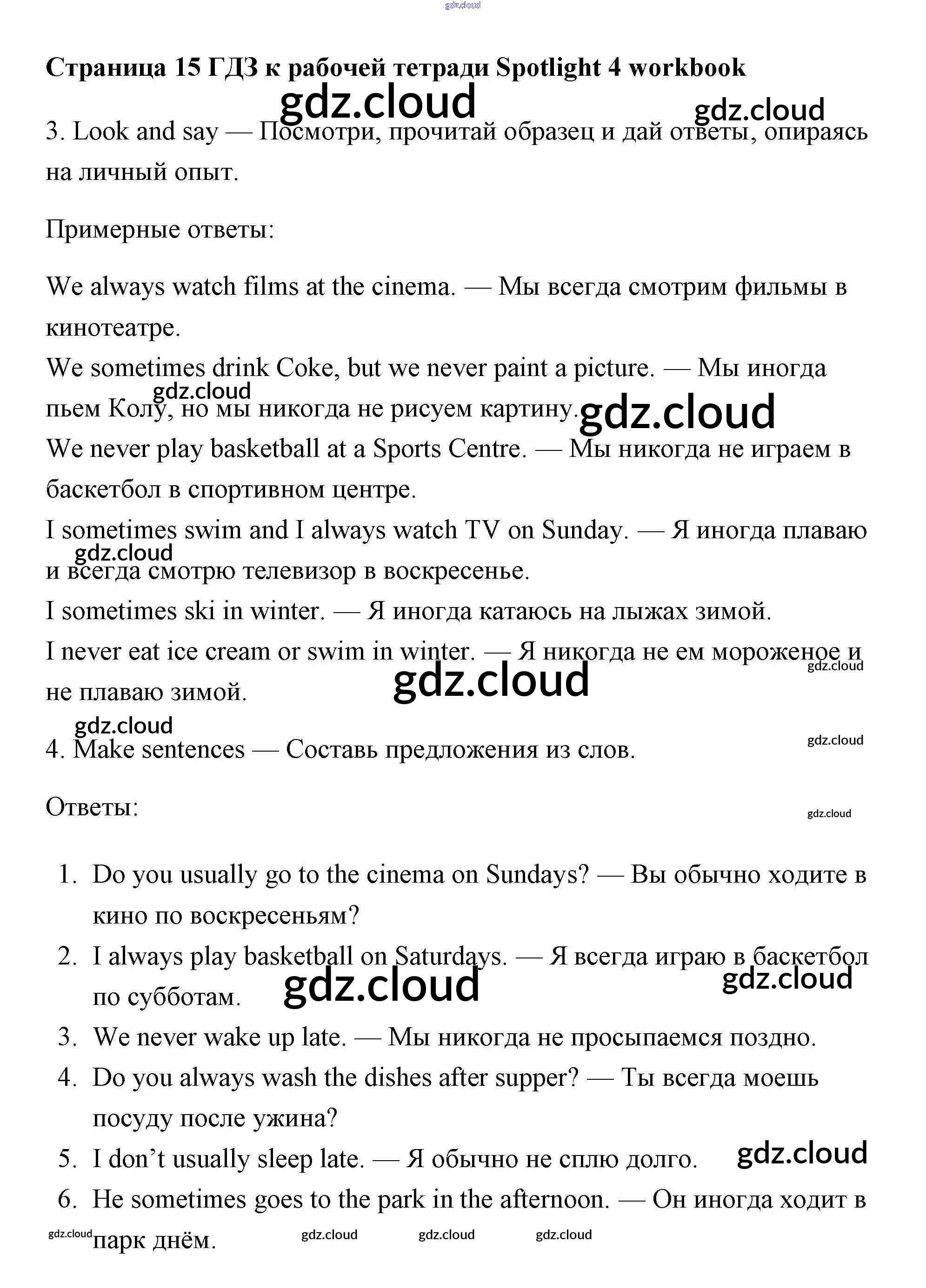 Ответ на задание страница 15 Рабочая тетрадь Английский язык за 4 (четвертый) класс Быкова, Эванс, Дули, Поспелова Spotlight 2017