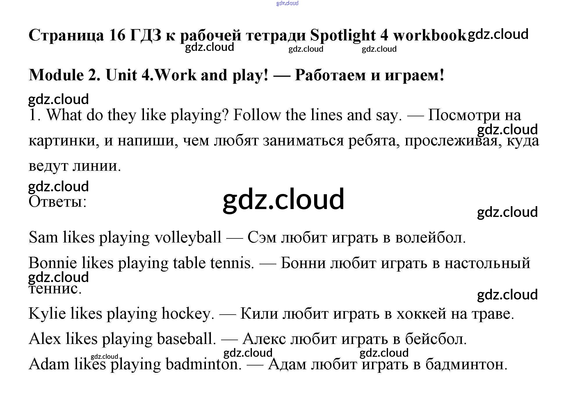 Ответ на задание страница 16 Рабочая тетрадь Английский язык за 4 (четвертый) класс Быкова, Эванс, Дули, Поспелова Spotlight 2017