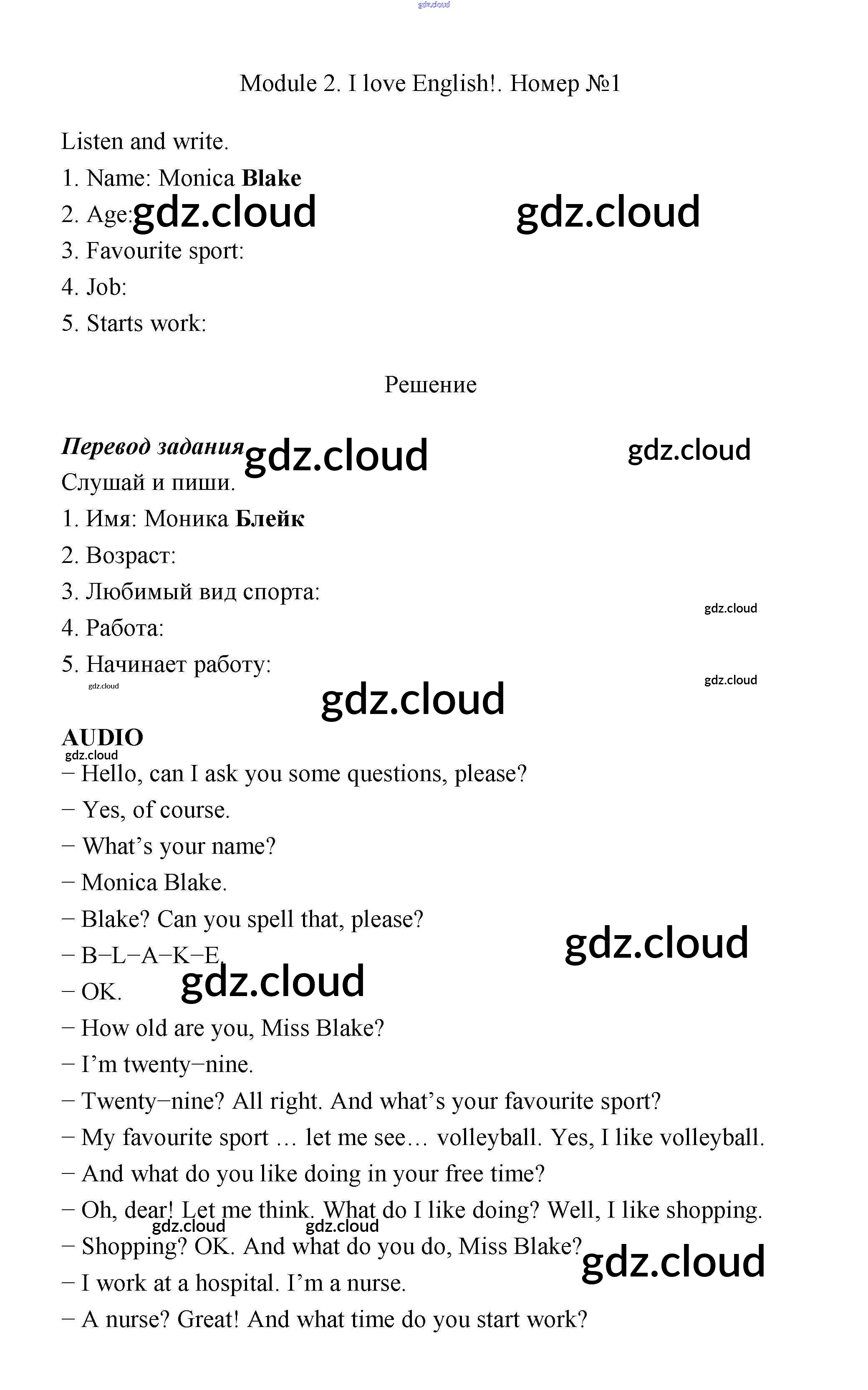 I love English Ответы к Module 2 по Английскому языку 4 класс Рабочая тетрадь Быкова Spotlight Просвещение