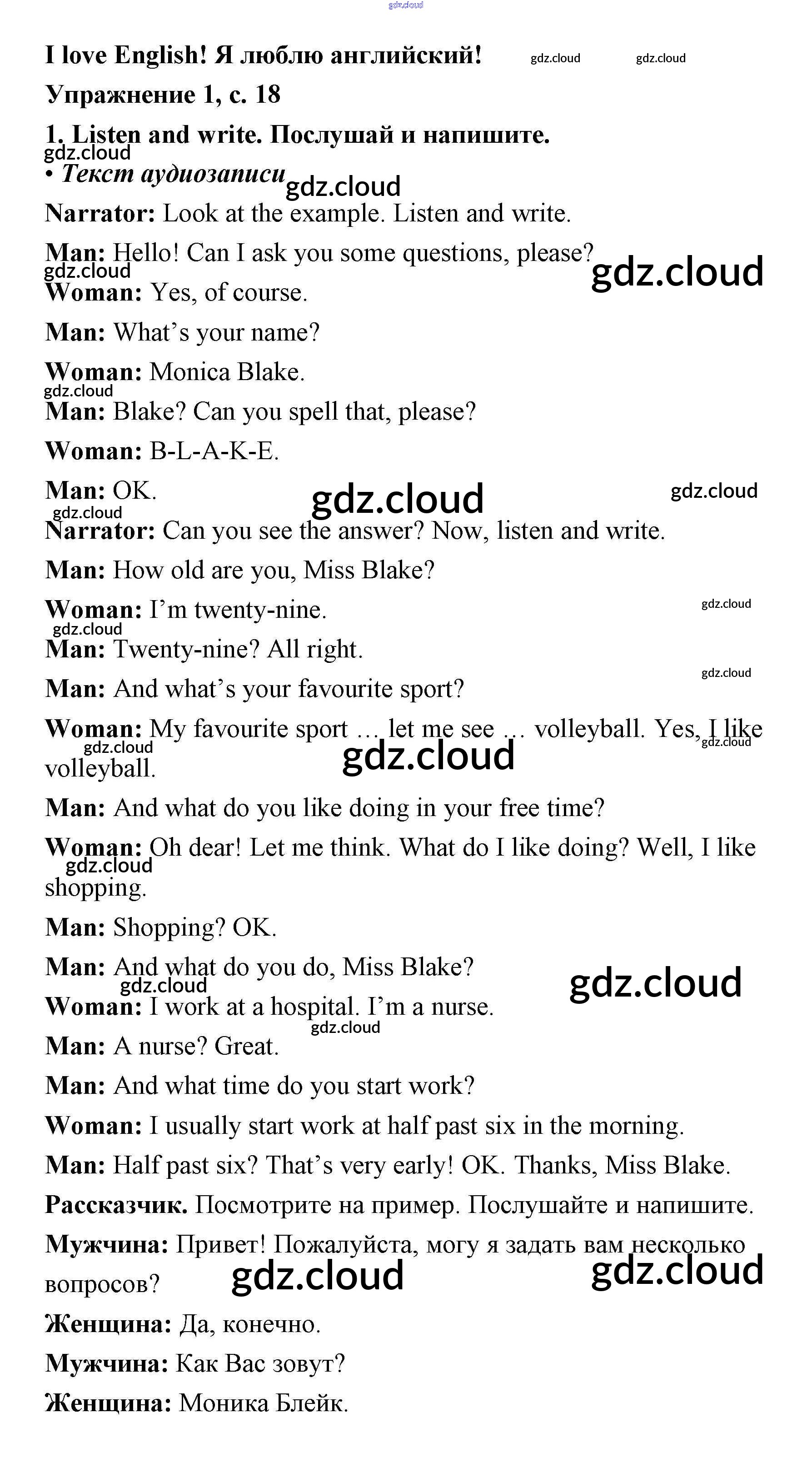 Ответ на задание страница 18 Рабочая тетрадь Английский язык за 4 (четвертый) класс Быкова, Эванс, Дули, Поспелова Spotlight 2017
