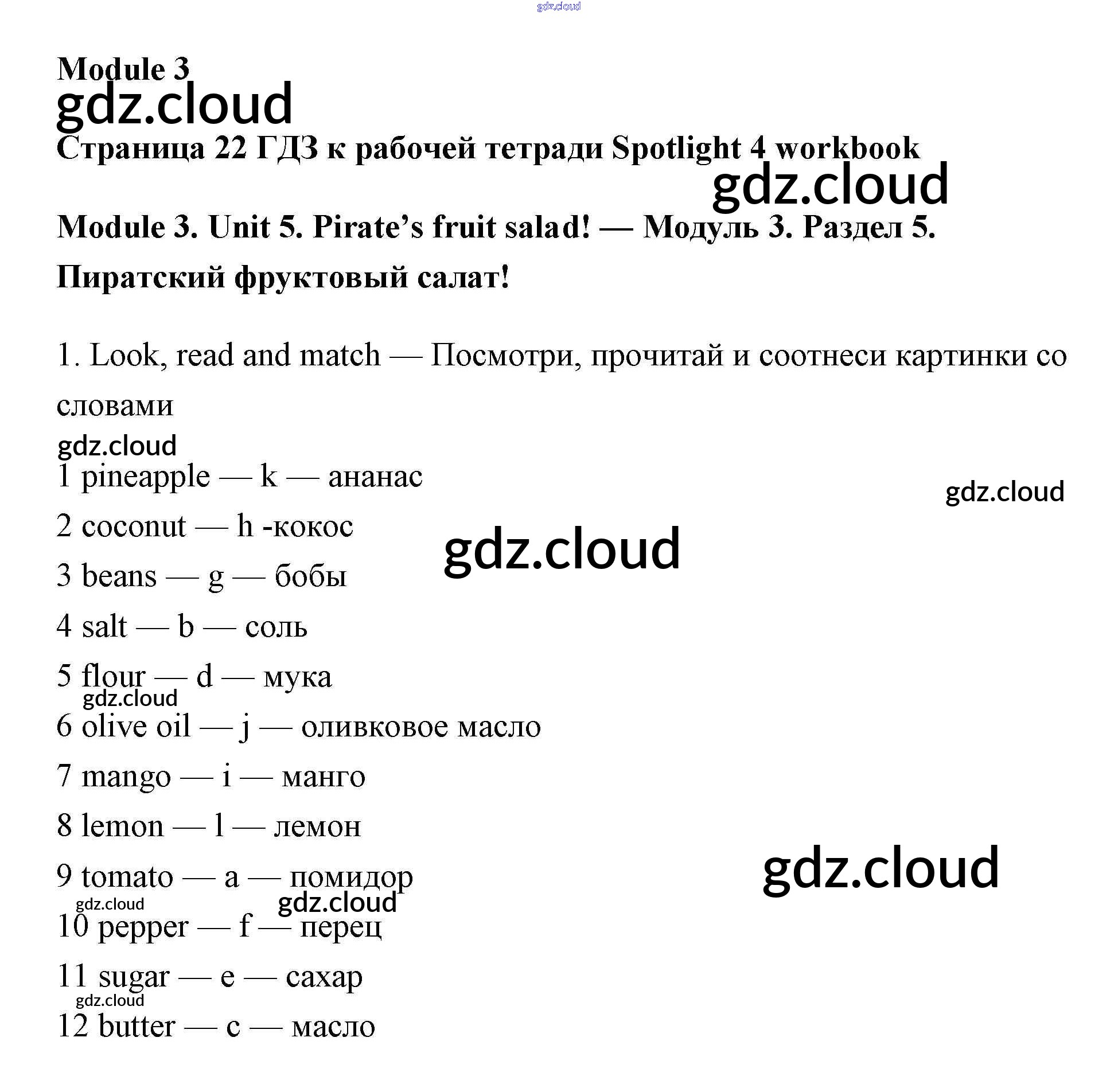 Ответ на задание страница 22 Рабочая тетрадь Английский язык за 4 (четвертый) класс Быкова, Эванс, Дули, Поспелова Spotlight 2017