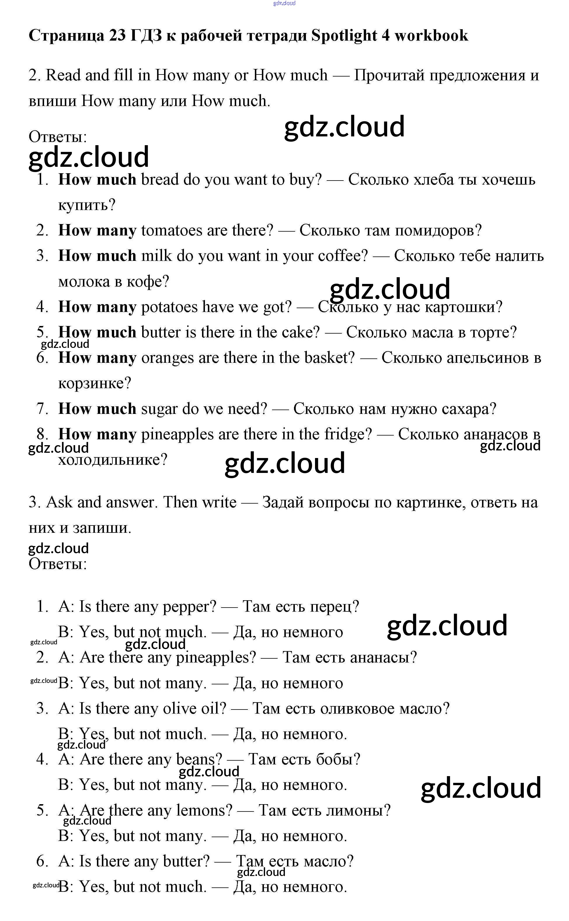 Ответ на задание страница 23 Рабочая тетрадь Английский язык за 4 (четвертый) класс Быкова, Эванс, Дули, Поспелова Spotlight 2017