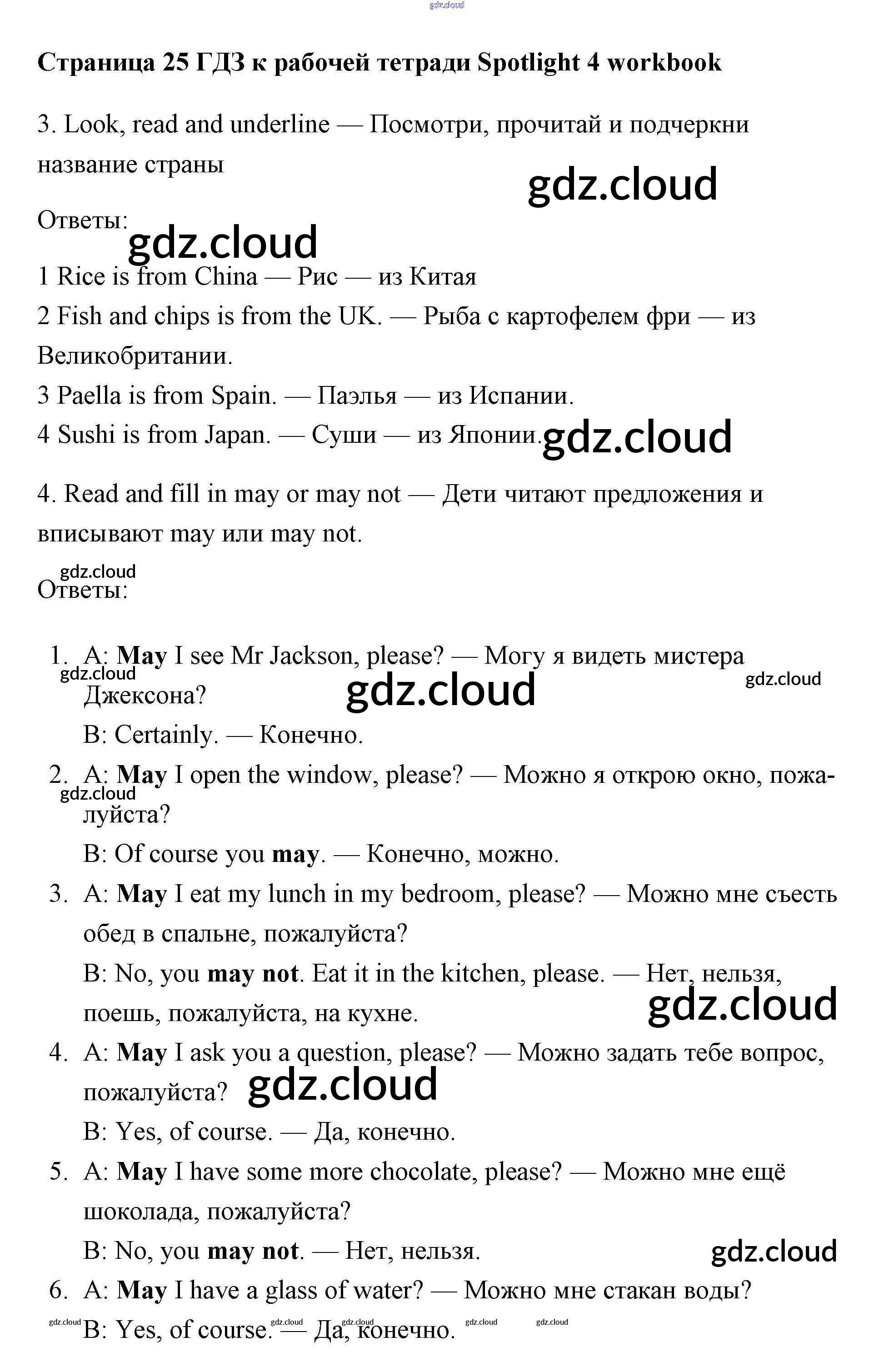 Ответ на задание страница 25 Рабочая тетрадь Английский язык за 4 (четвертый) класс Быкова, Эванс, Дули, Поспелова Spotlight 2017