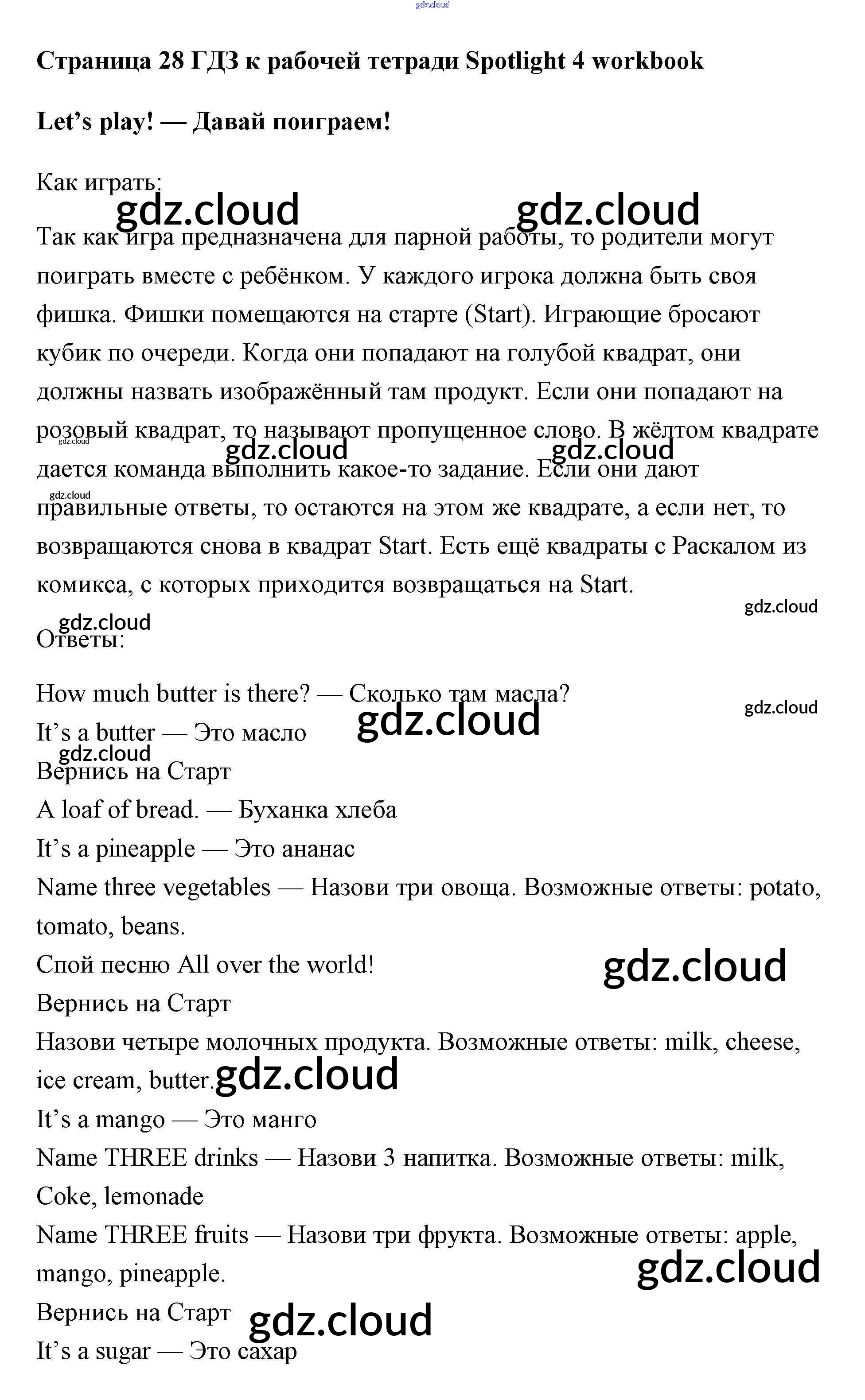 Ответ на задание страница 28 Рабочая тетрадь Английский язык за 4 (четвертый) класс Быкова, Эванс, Дули, Поспелова Spotlight 2017