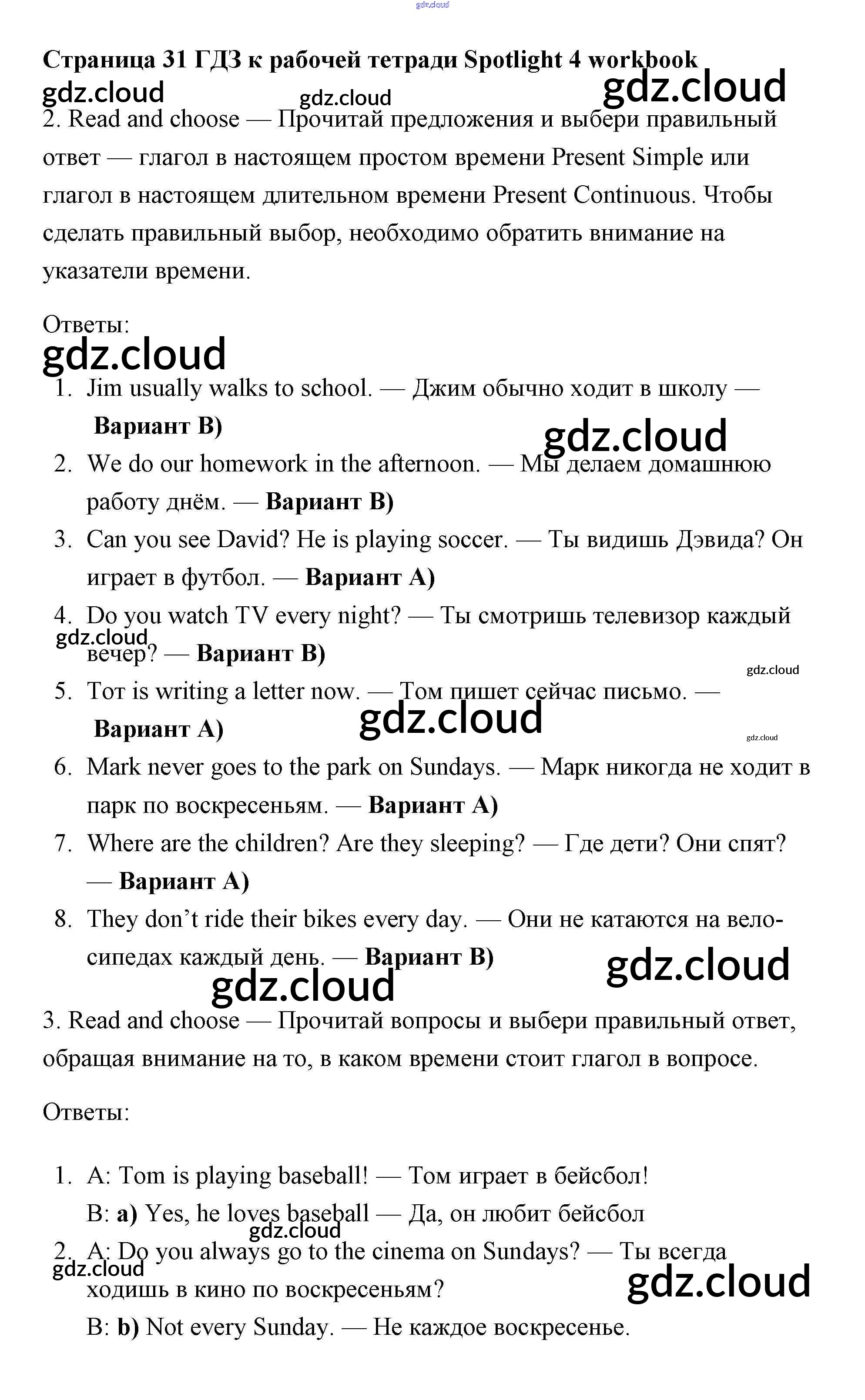 Ответ на задание страница 31 Рабочая тетрадь Английский язык за 4 (четвертый) класс Быкова, Эванс, Дули, Поспелова Spotlight 2017
