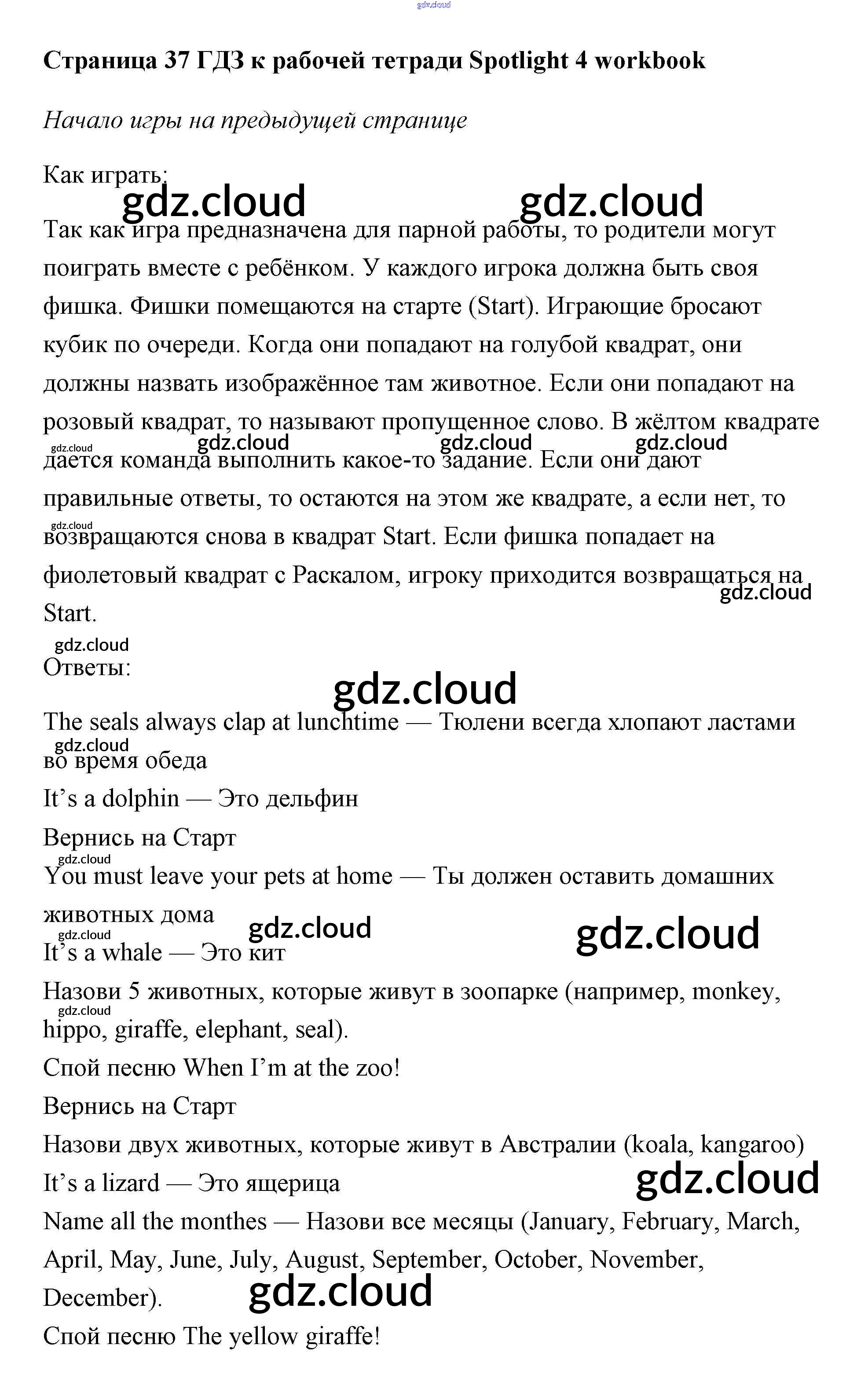 Ответ на задание страница 37 Рабочая тетрадь Английский язык за 4 (четвертый) класс Быкова, Эванс, Дули, Поспелова Spotlight 2017