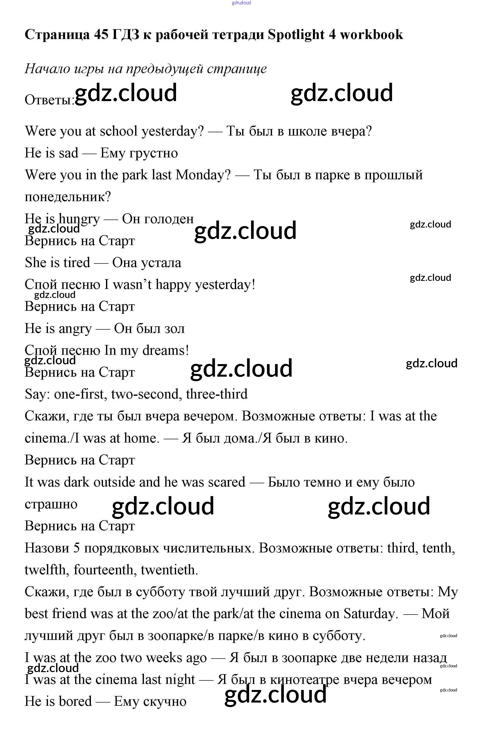Ответ на задание страница 45 Рабочая тетрадь Английский язык  за 4 (четвертый) класс Быкова, Эванс, Дули, Поспелова Spotlight  2017