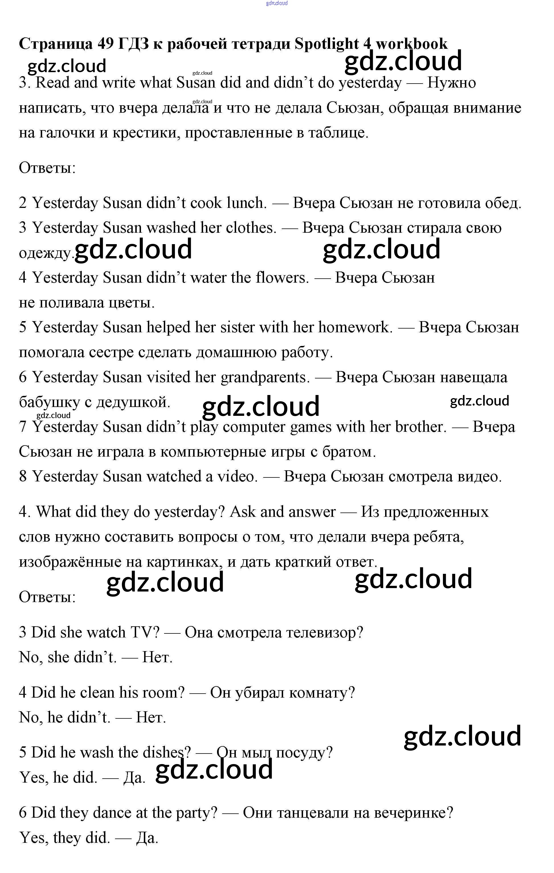 Ответ на задание страница 49 Рабочая тетрадь Английский язык за 4 (четвертый) класс Быкова, Эванс, Дули, Поспелова Spotlight 2017