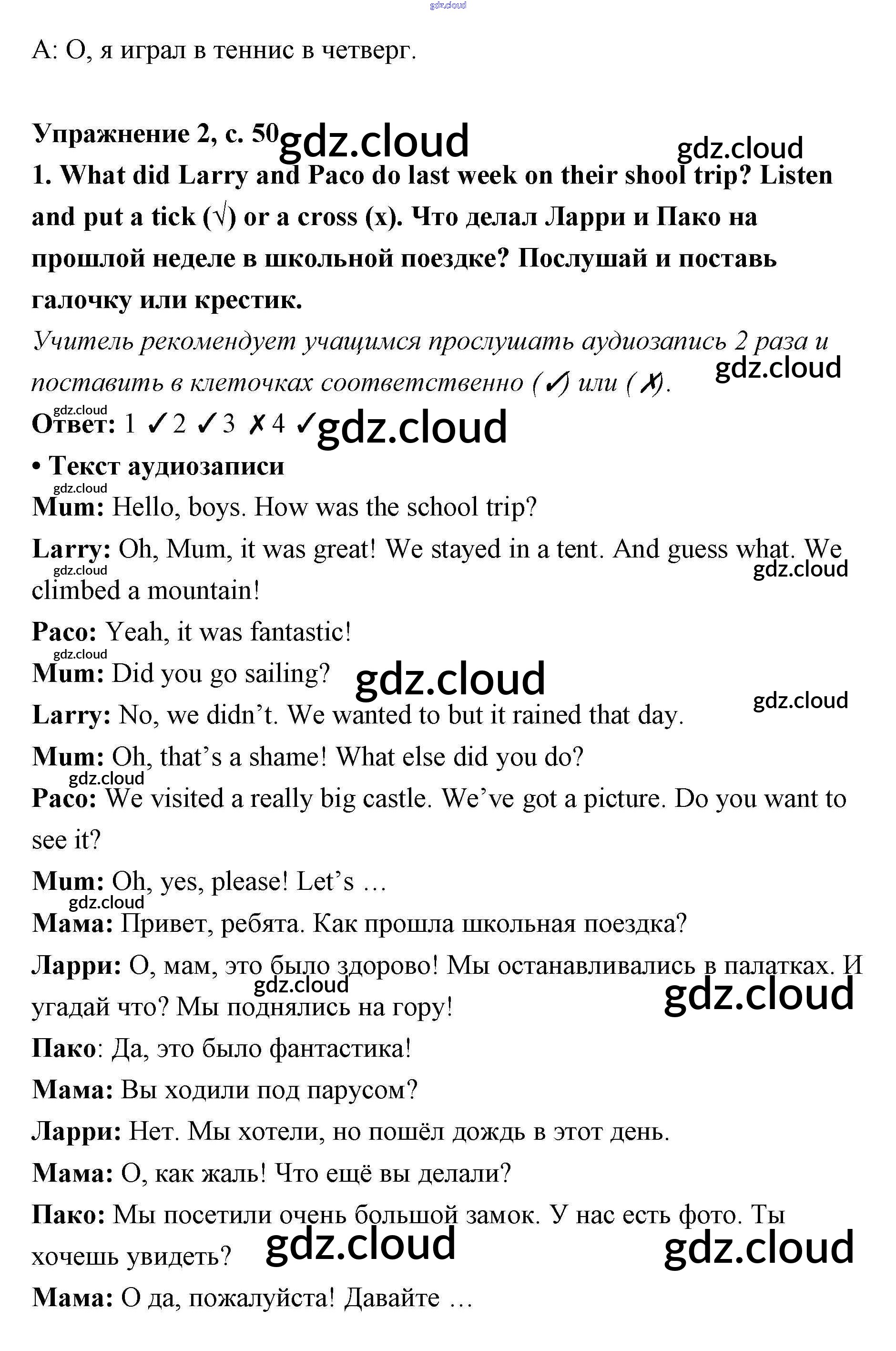 Ответ на задание страница 50 Рабочая тетрадь Английский язык за 4 (четвертый) класс Быкова, Эванс, Дули, Поспелова Spotlight 2017