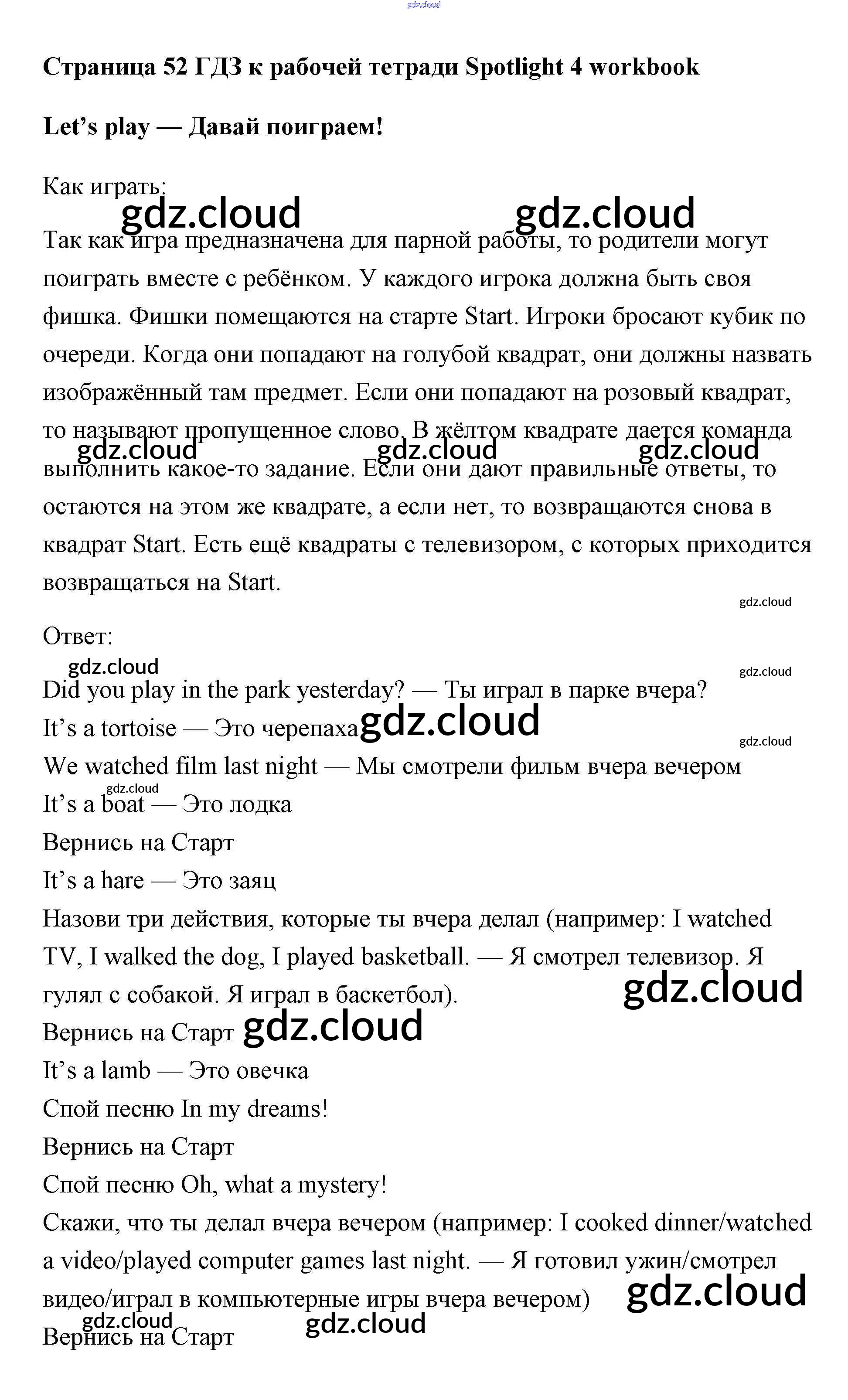 Ответ на задание страница 52 Рабочая тетрадь Английский язык за 4 (четвертый) класс Быкова, Эванс, Дули, Поспелова Spotlight 2017