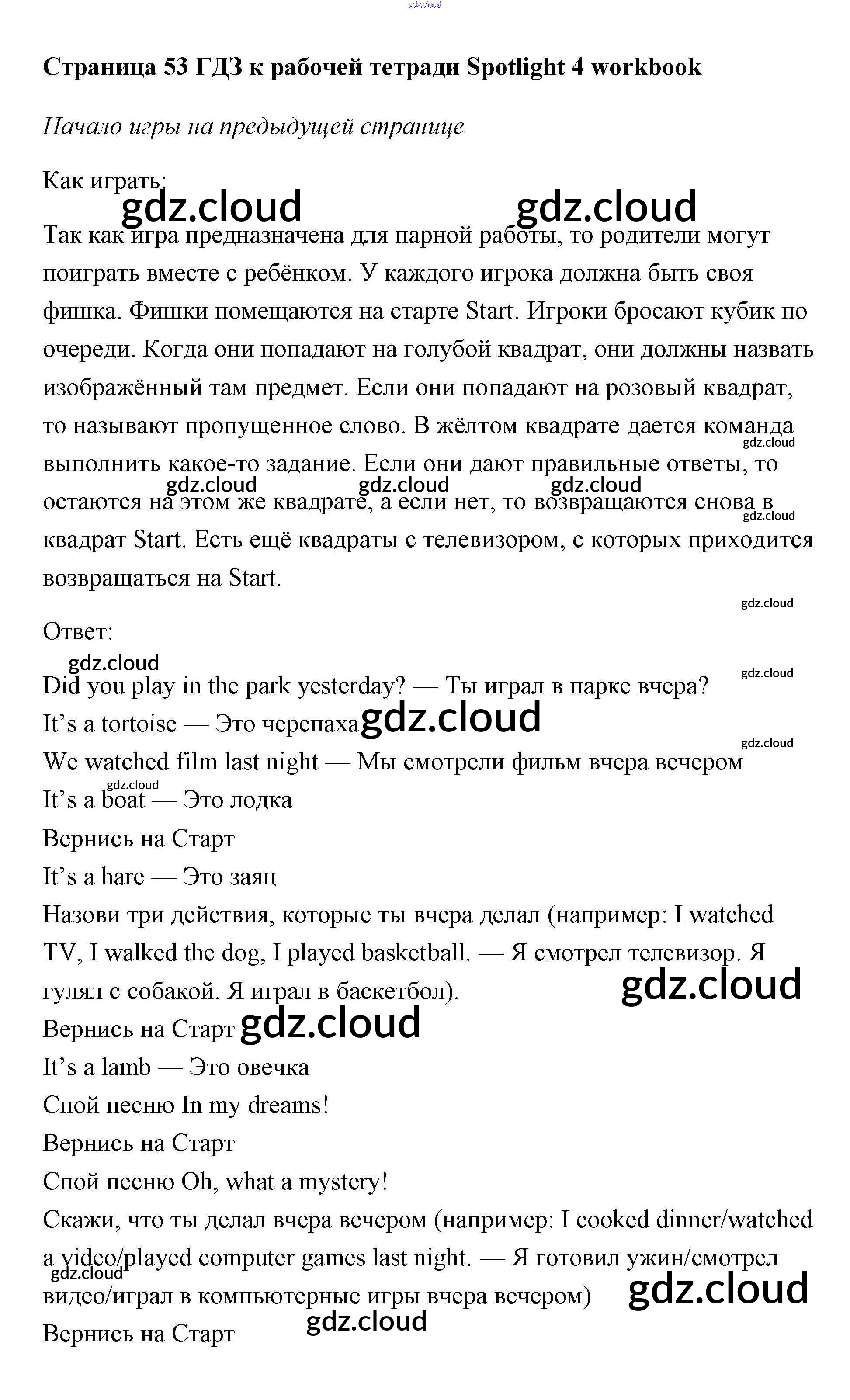 Ответ на задание страница 53 Рабочая тетрадь Английский язык за 4 (четвертый) класс Быкова, Эванс, Дули, Поспелова Spotlight 2017