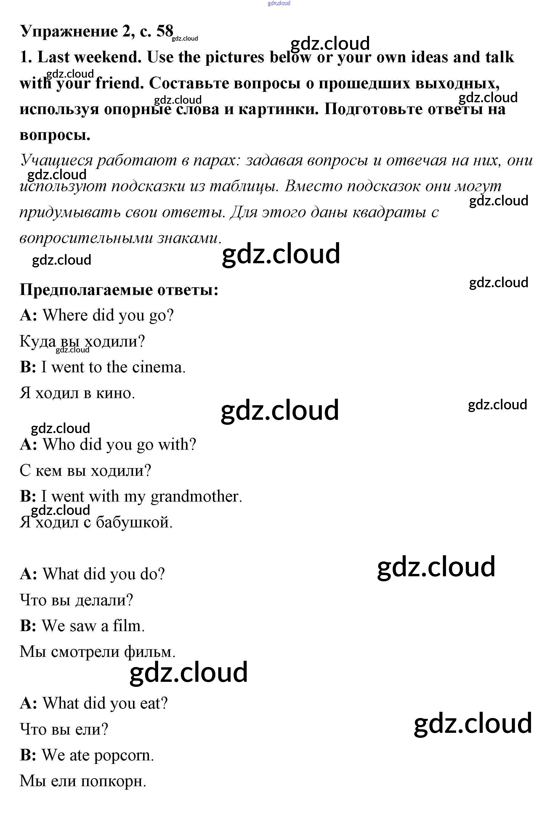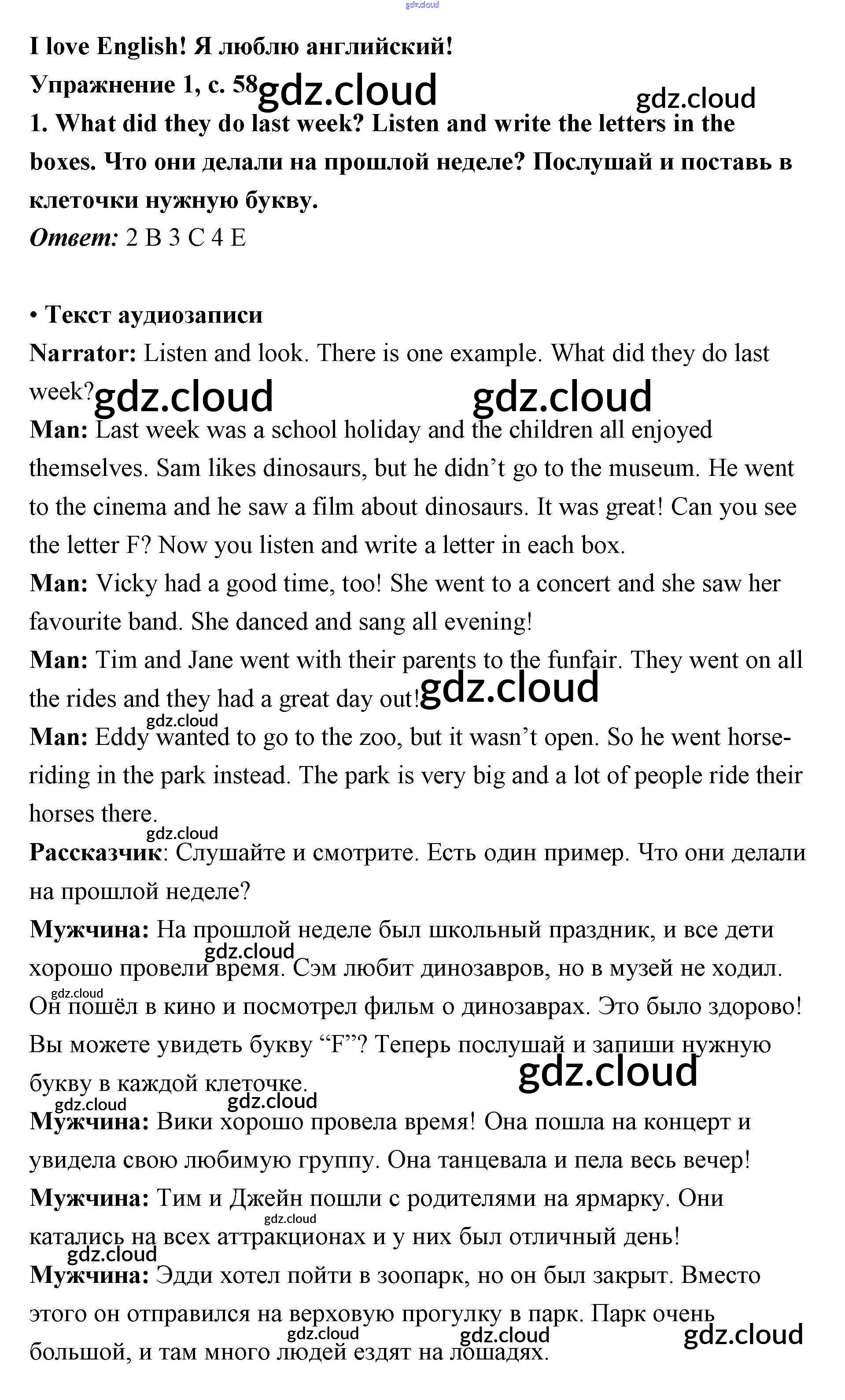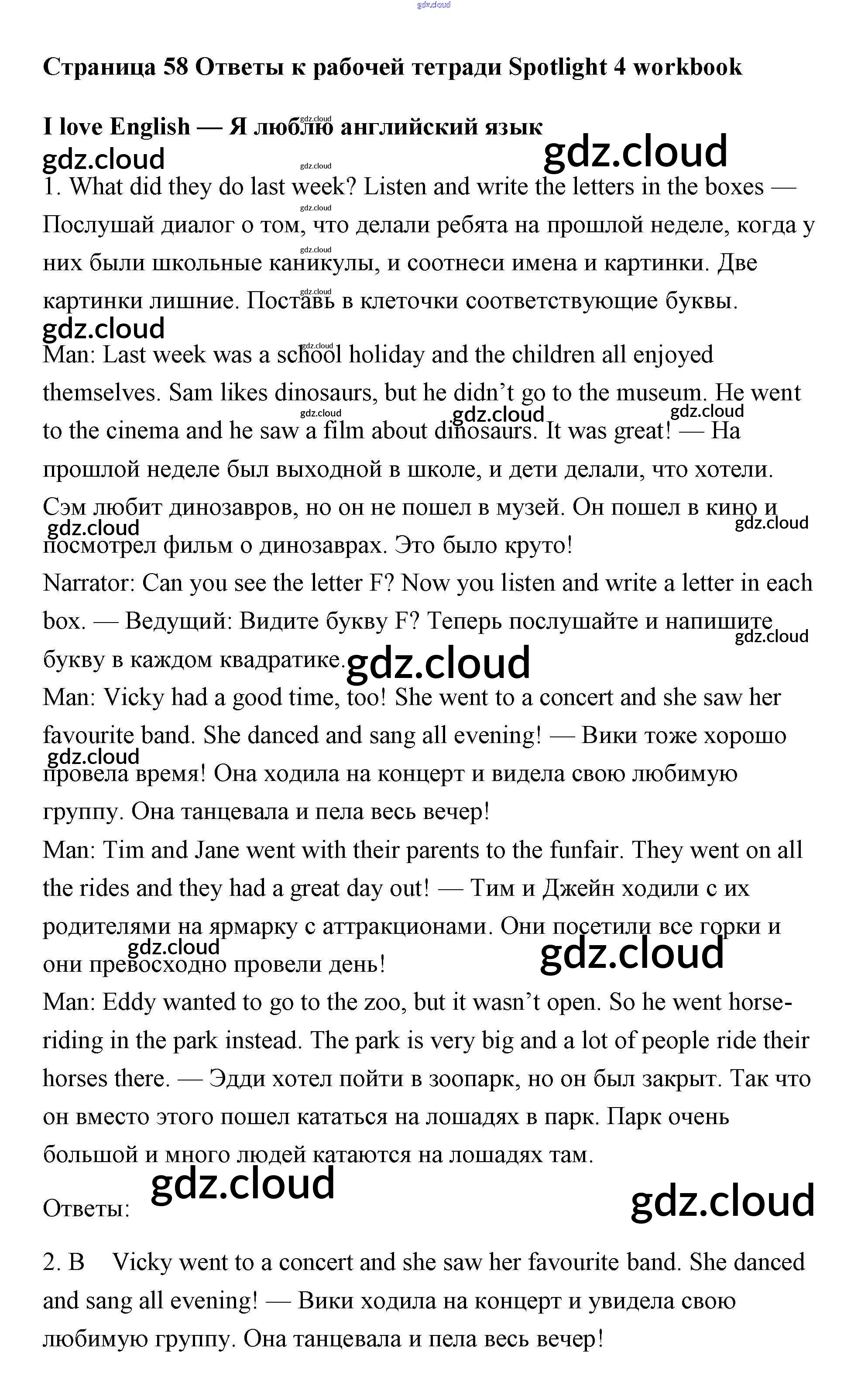 Ответ на задание страница 58 Рабочая тетрадь Английский язык за 4 (четвертый) класс Быкова, Эванс, Дули, Поспелова Spotlight 2017