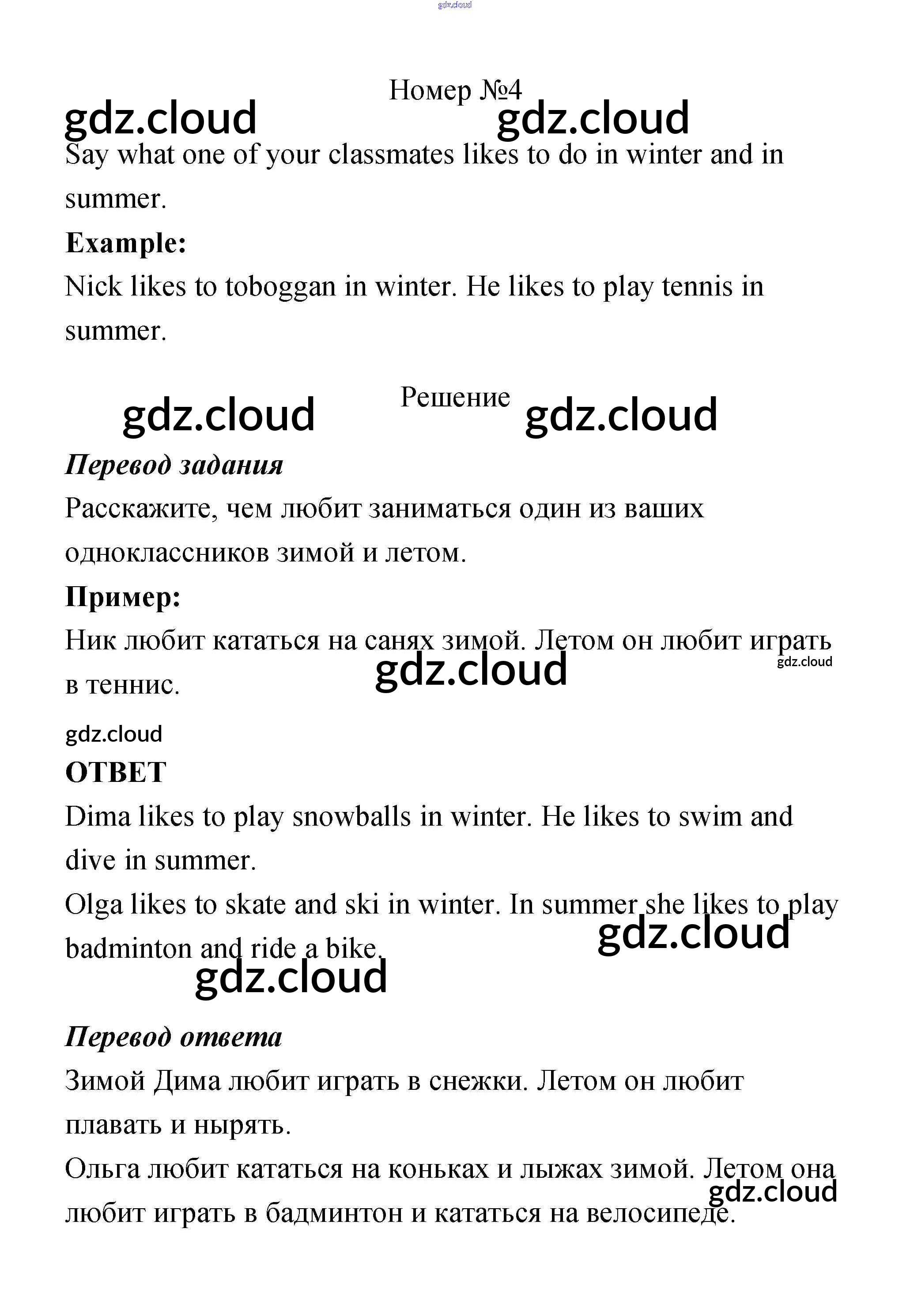 Ответ на задание 4 Учебник Английский язык за 4 (четвертый) класс Биболетова, Денисенко, Трубанева Enjoy English 2016
