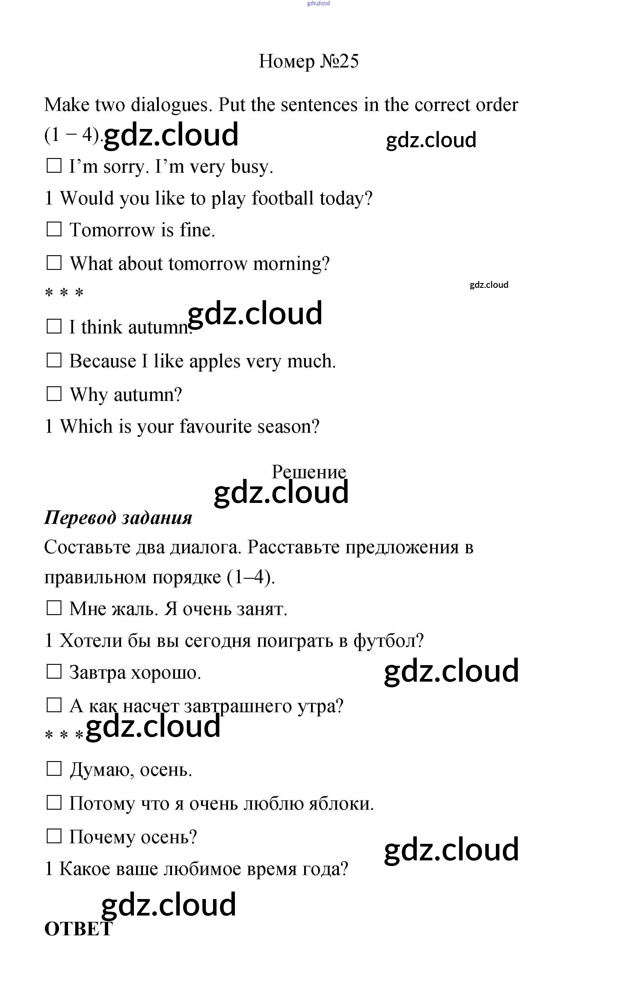 Ответ на задание 25 Учебник Английский язык за 4 (четвертый) класс Биболетова, Денисенко, Трубанева Enjoy English 2016