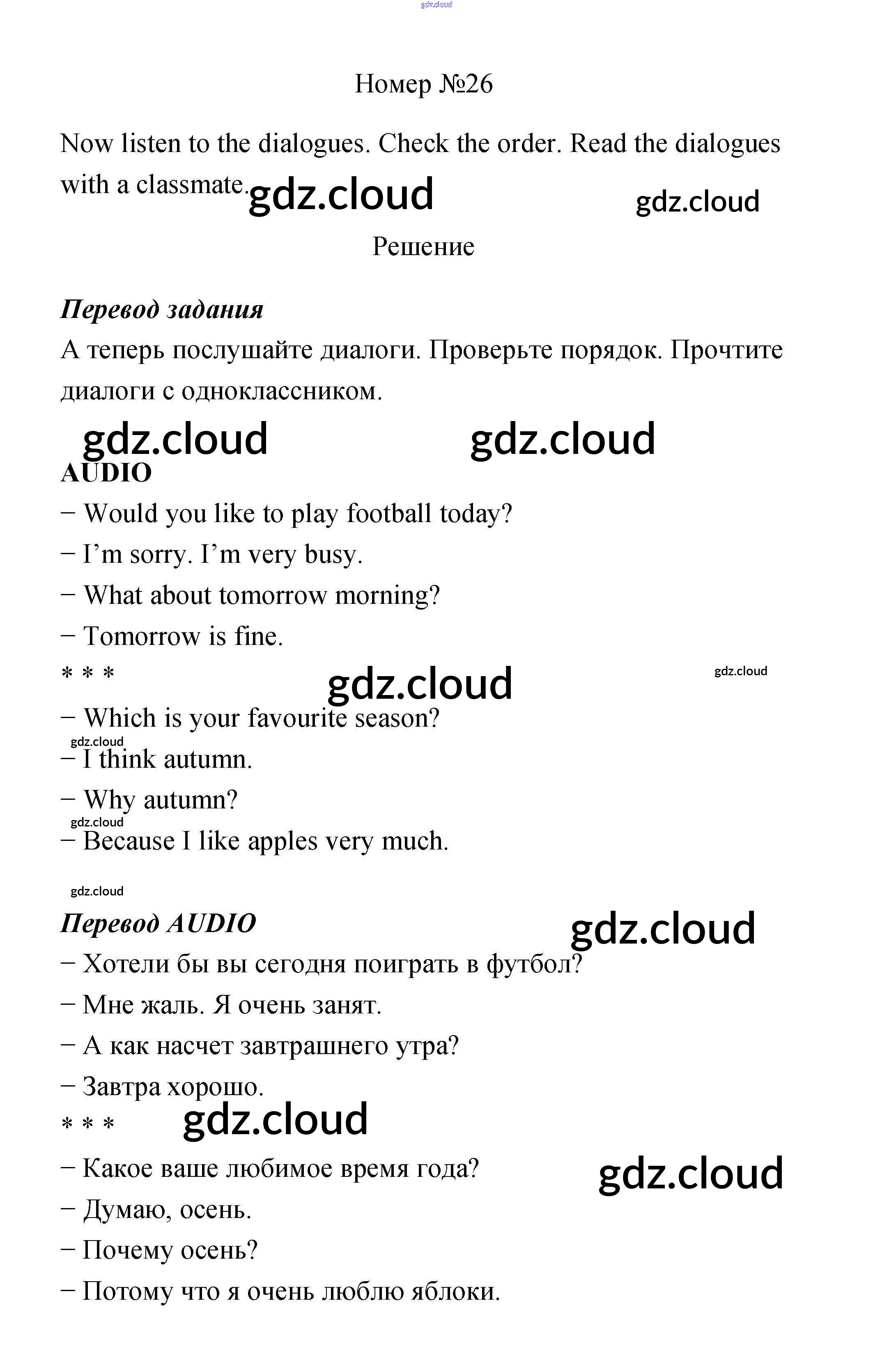 Ответ на задание 26 Учебник Английский язык за 4 (четвертый) класс Биболетова, Денисенко, Трубанева Enjoy English 2016