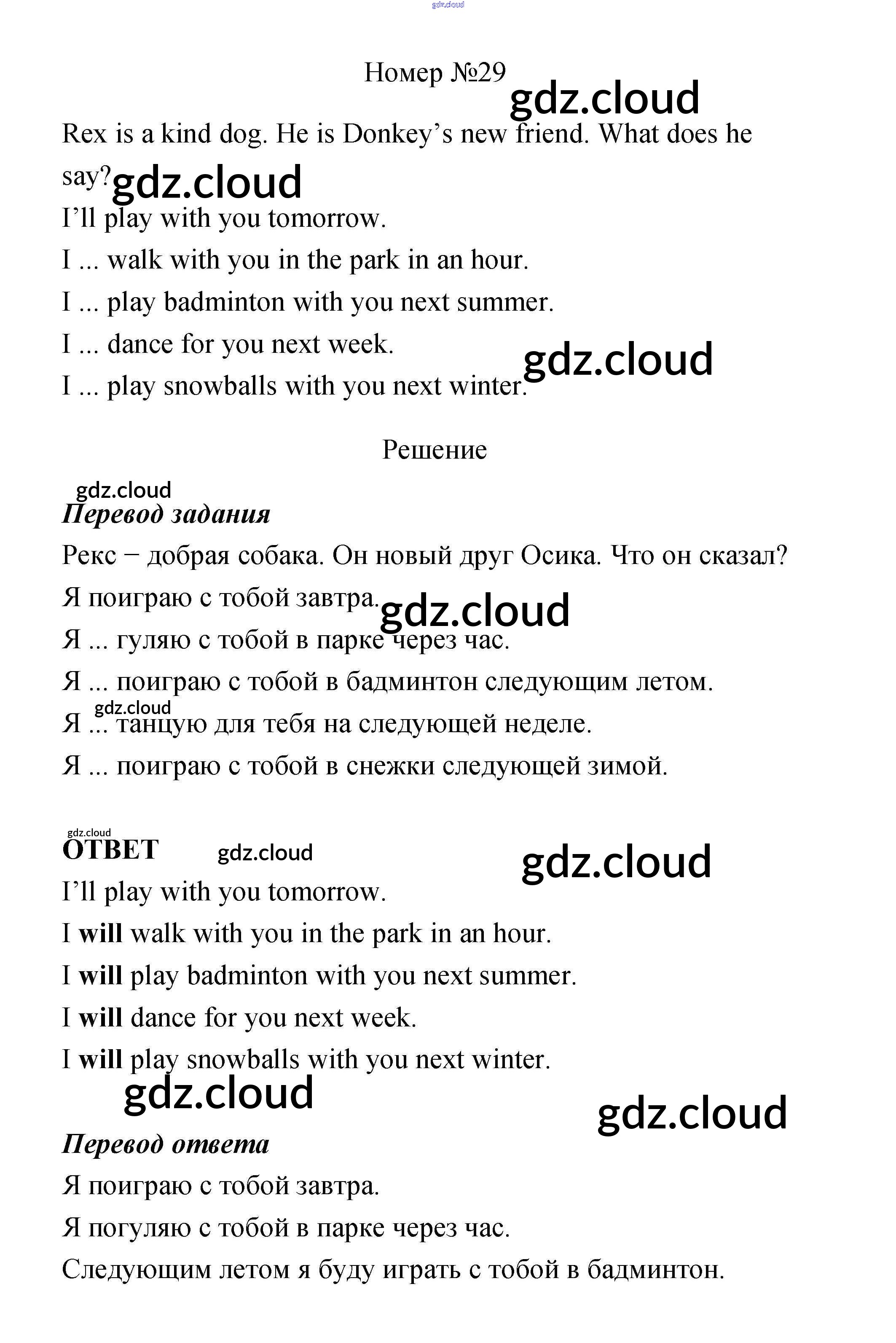 Ответ на задание 29 Учебник Английский язык за 4 (четвертый) класс Биболетова, Денисенко, Трубанева Enjoy English 2016