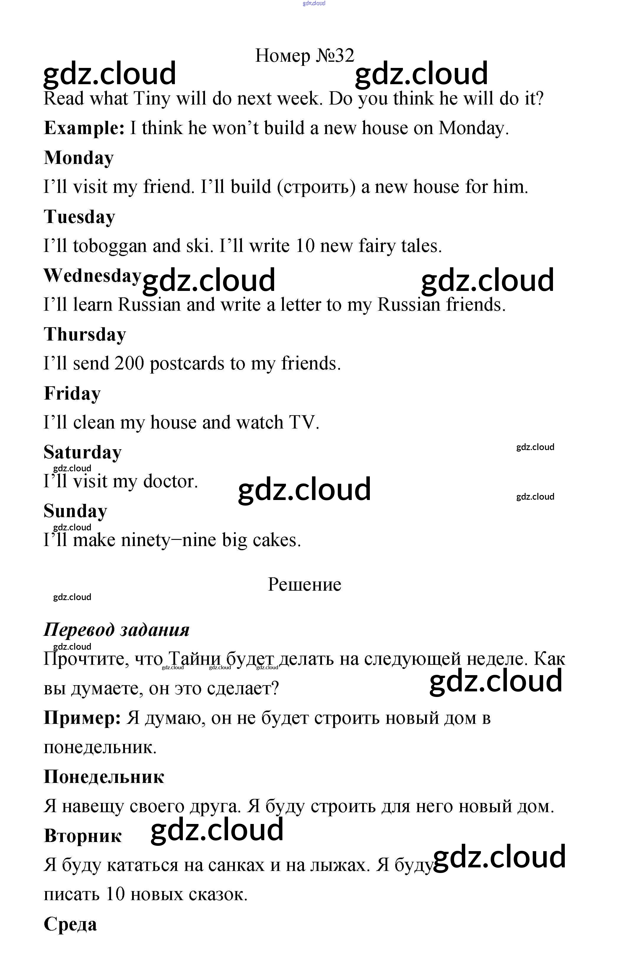 Ответ на задание 32 Учебник Английский язык за 4 (четвертый) класс Биболетова, Денисенко, Трубанева Enjoy English 2016