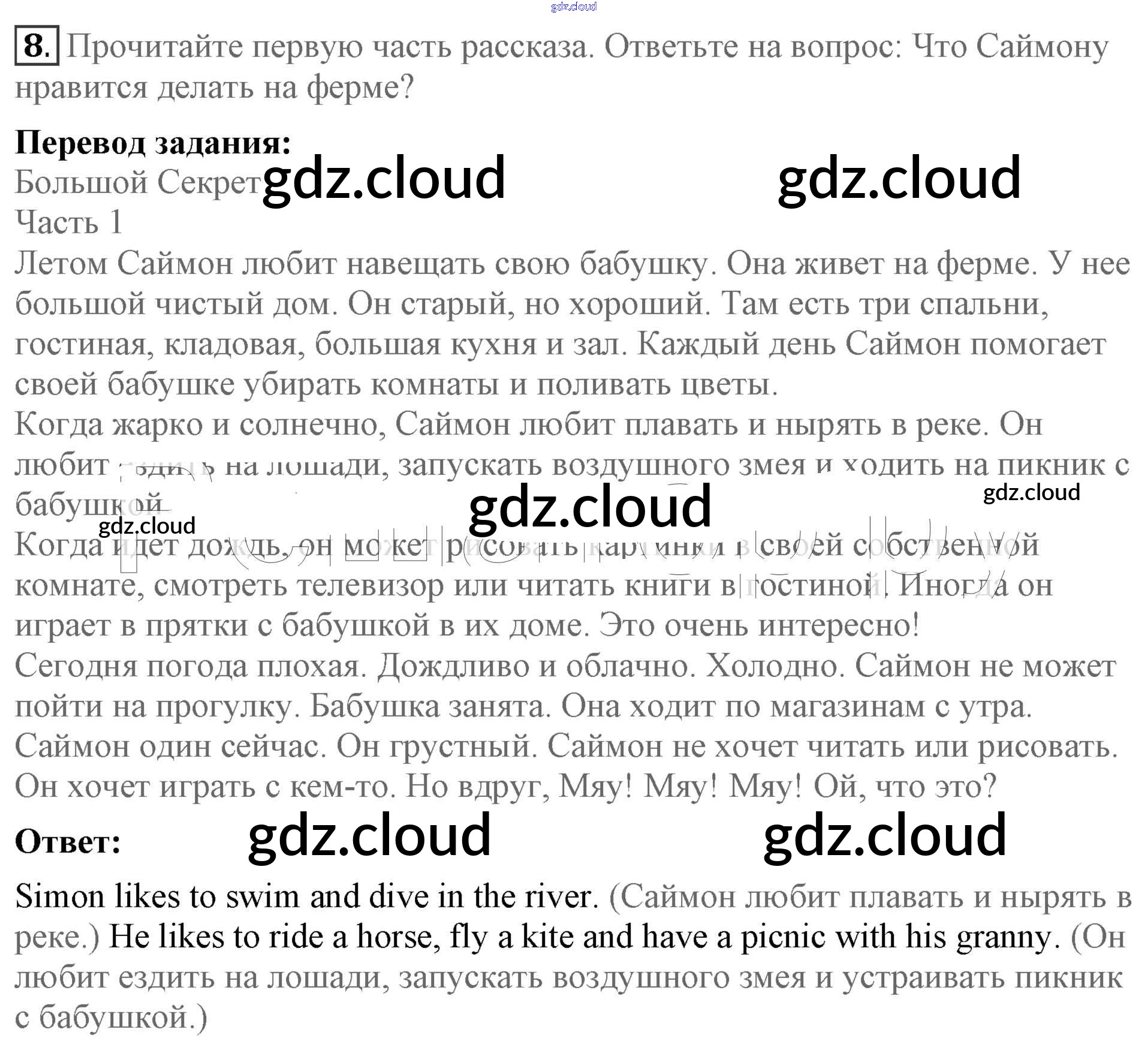 Ответ на задание 8 Учебник Английский язык за 4 (четвертый) класс Биболетова, Денисенко, Трубанева Enjoy English 2016