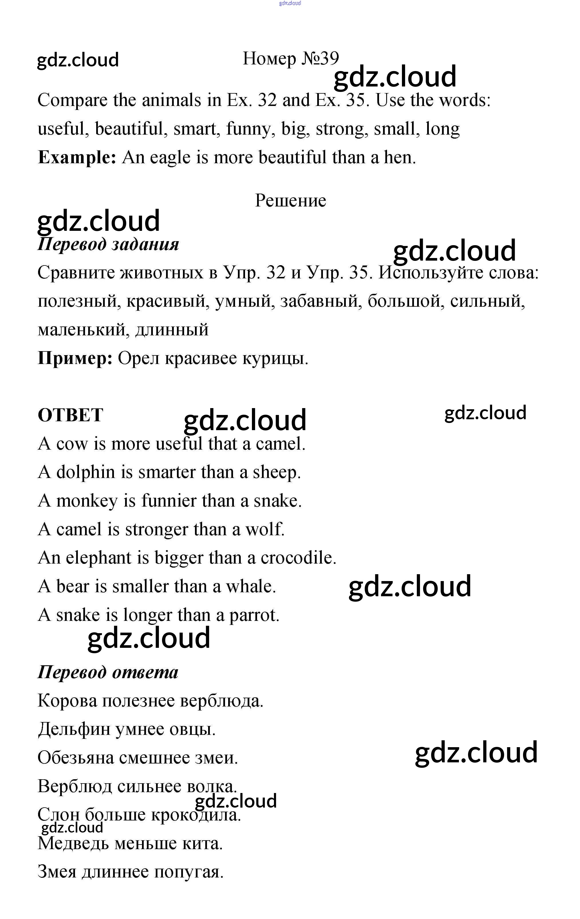 Ответ на задание 39 Учебник Английский язык за 4 (четвертый) класс Биболетова, Денисенко, Трубанева Enjoy English 2016