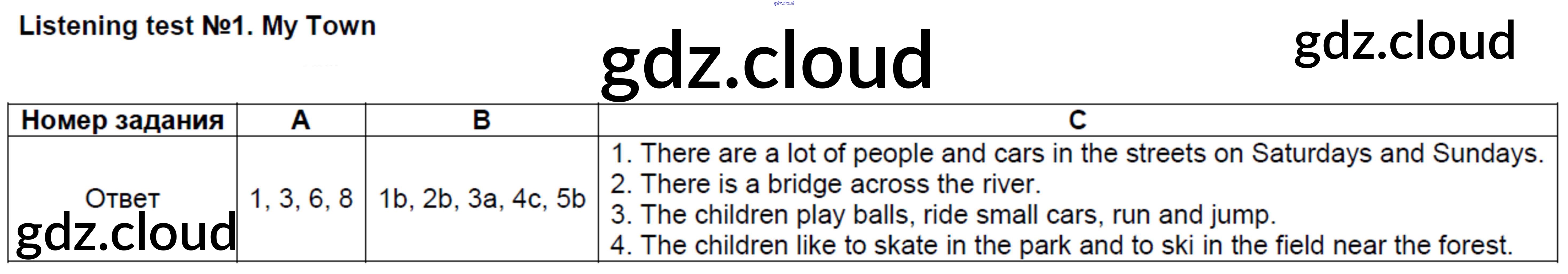 Ответ на задание №1. Listening test 1. My Town Контрольно-измерительные материалы (КИМ) Английский язык за 4 (четвертый) класс Кулинич 2018