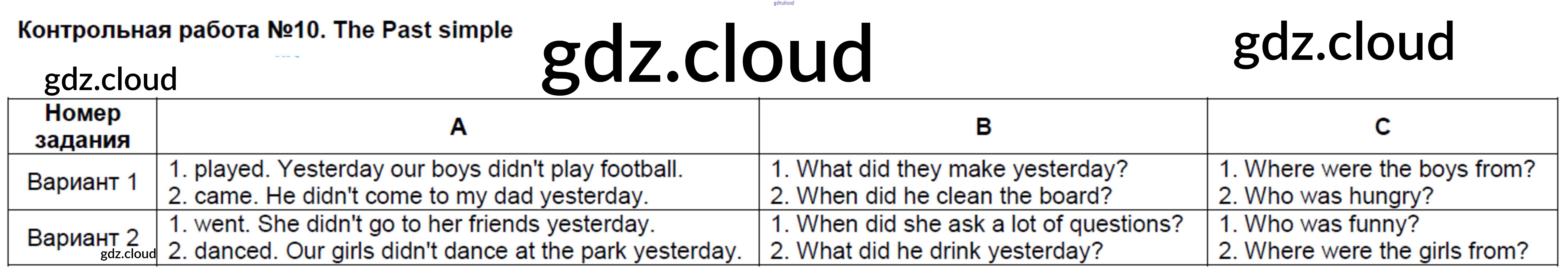 Ответ на задание КР №10. The Past simple Контрольно-измерительные материалы (КИМ) Английский язык  за 4 (четвертый) класс Кулинич   2018