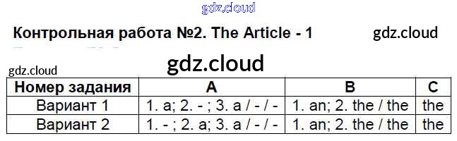 Ответ на задание КР №2. The Article - 1 Контрольно-измерительные материалы (КИМ) Английский язык за 4 (четвертый) класс Кулинич 2018
