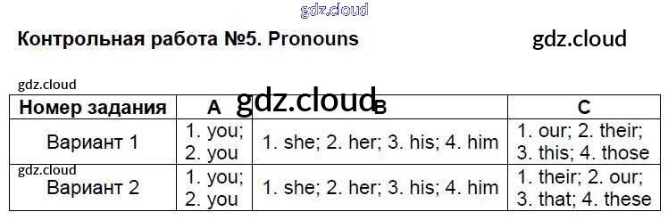 Ответ на задание КР №5. Pronouns Контрольно-измерительные материалы (КИМ) Английский язык за 4 (четвертый) класс Кулинич 2018