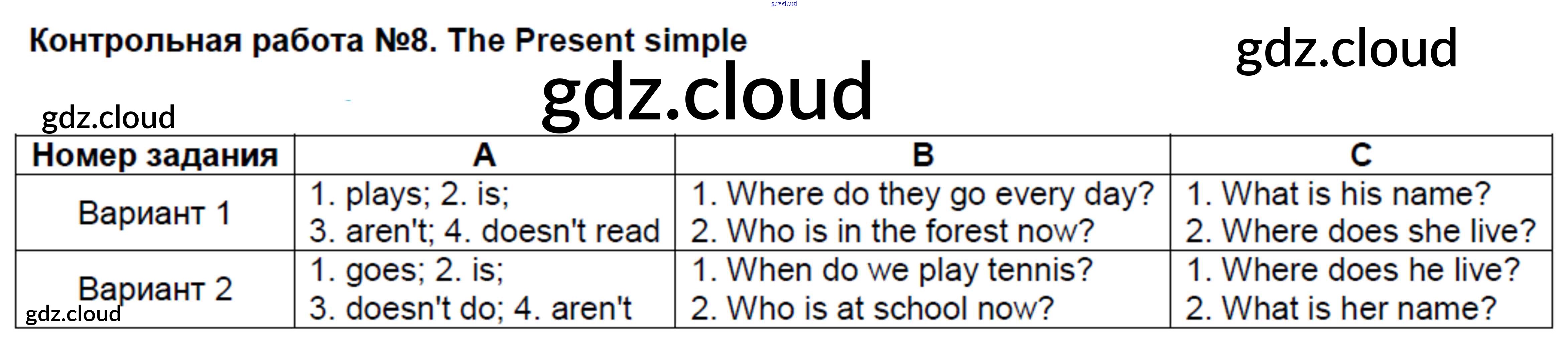 Ответ на задание КР №8. The Present simple Контрольно-измерительные материалы (КИМ) Английский язык за 4 (четвертый) класс Кулинич 2018