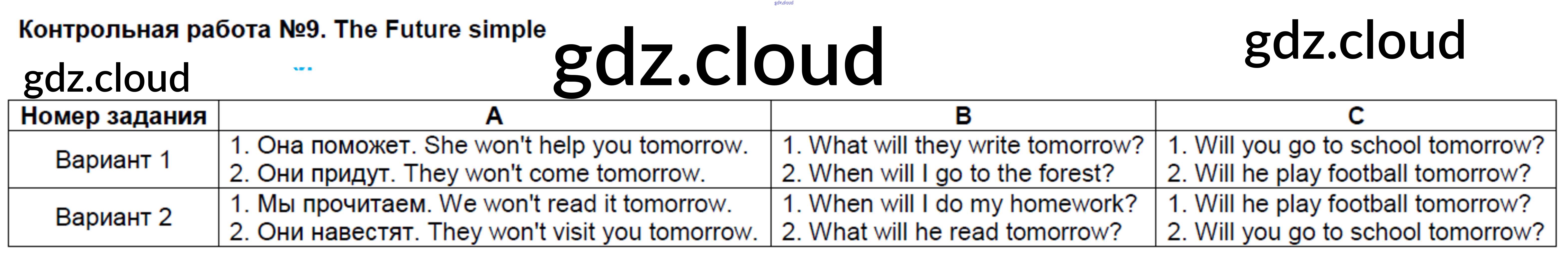 Ответ на задание КР №9. The Future simple Контрольно-измерительные материалы (КИМ) Английский язык за 4 (четвертый) класс Кулинич 2018