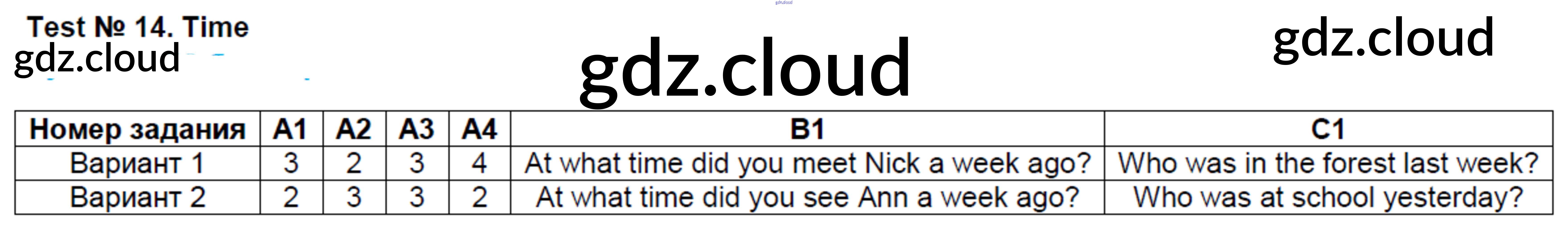 Ответ на задание Тест №14. Time Контрольно-измерительные материалы (КИМ) Английский язык за 4 (четвертый) класс Кулинич 2018