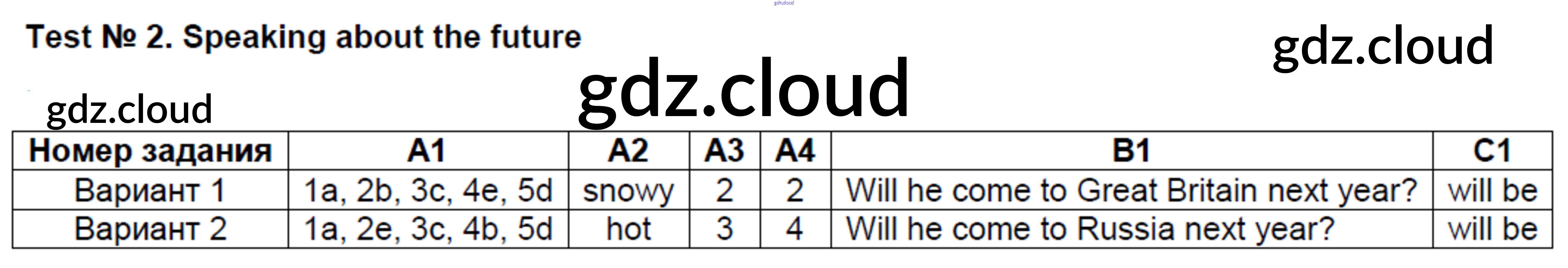 Ответ на задание Тест №2. Speaking about the future Контрольно-измерительные материалы (КИМ) Английский язык за 4 (четвертый) класс Кулинич 2018