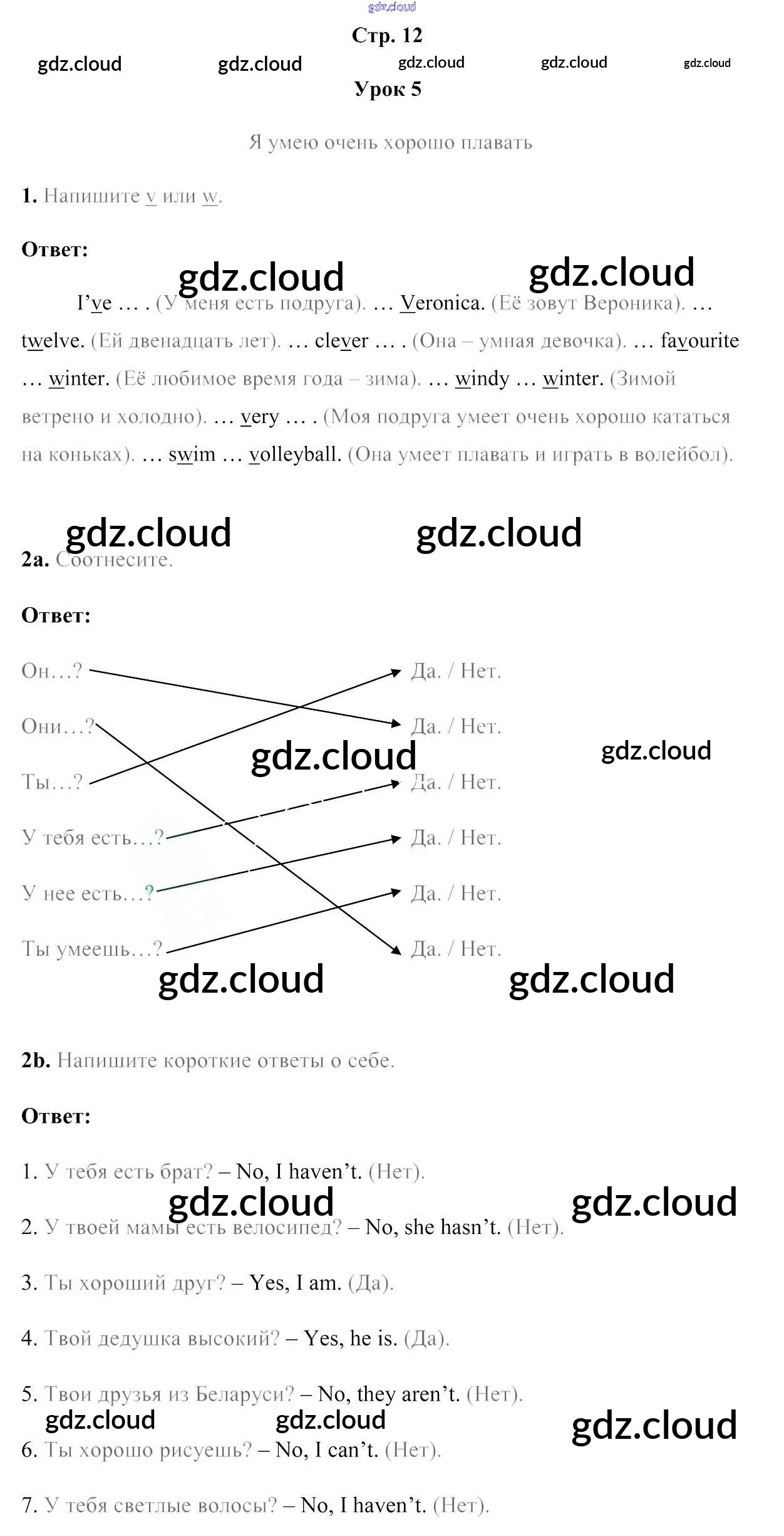 Ответ на задание стр.12 Рабочая тетрадь Английский язык за 4 (четвертый) класс Лапицкая, Калишевич, Севрюкова, Седунова 2019 Часть 1, 2