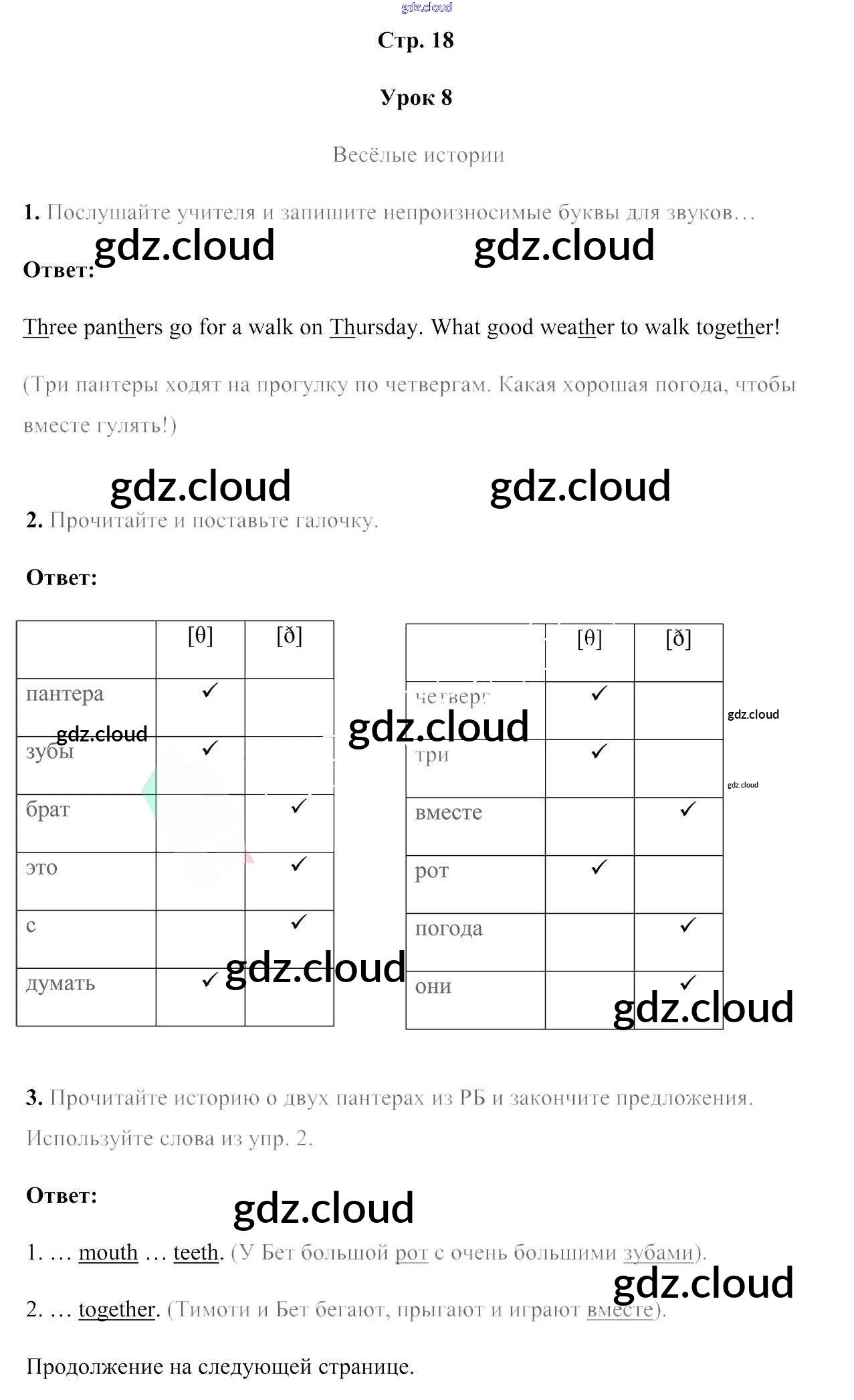 Ответ на задание стр.18 Рабочая тетрадь Английский язык за 4 (четвертый) класс Лапицкая, Калишевич, Севрюкова, Седунова 2019 Часть 1, 2