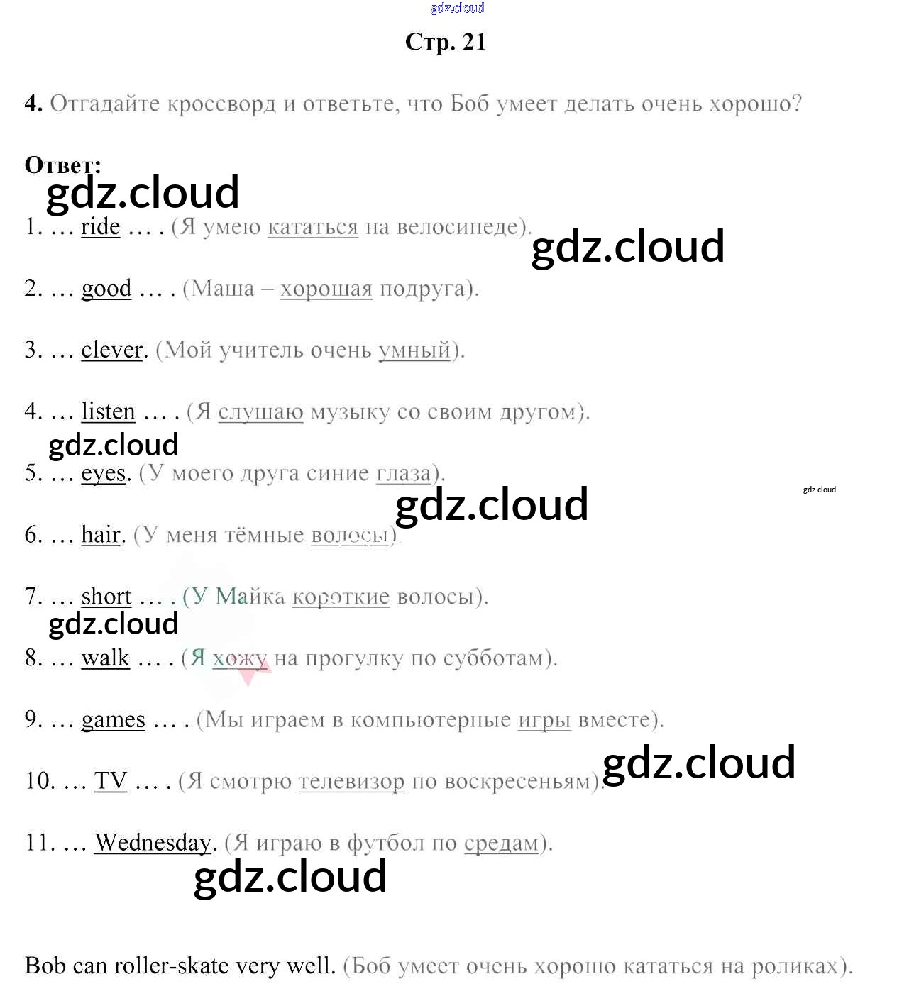 Ответ на задание стр.21 Рабочая тетрадь Английский язык за 4 (четвертый) класс Лапицкая, Калишевич, Севрюкова, Седунова 2019 Часть 1, 2
