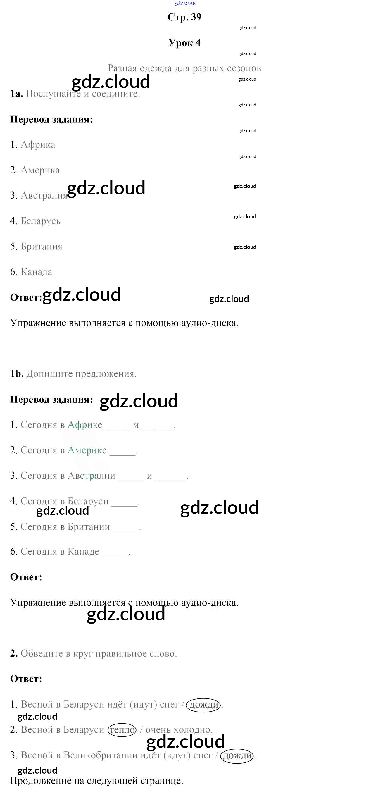 Ответ на задание стр.39 Рабочая тетрадь Английский язык за 4 (четвертый) класс Лапицкая, Калишевич, Севрюкова, Седунова 2019 Часть 1, 2