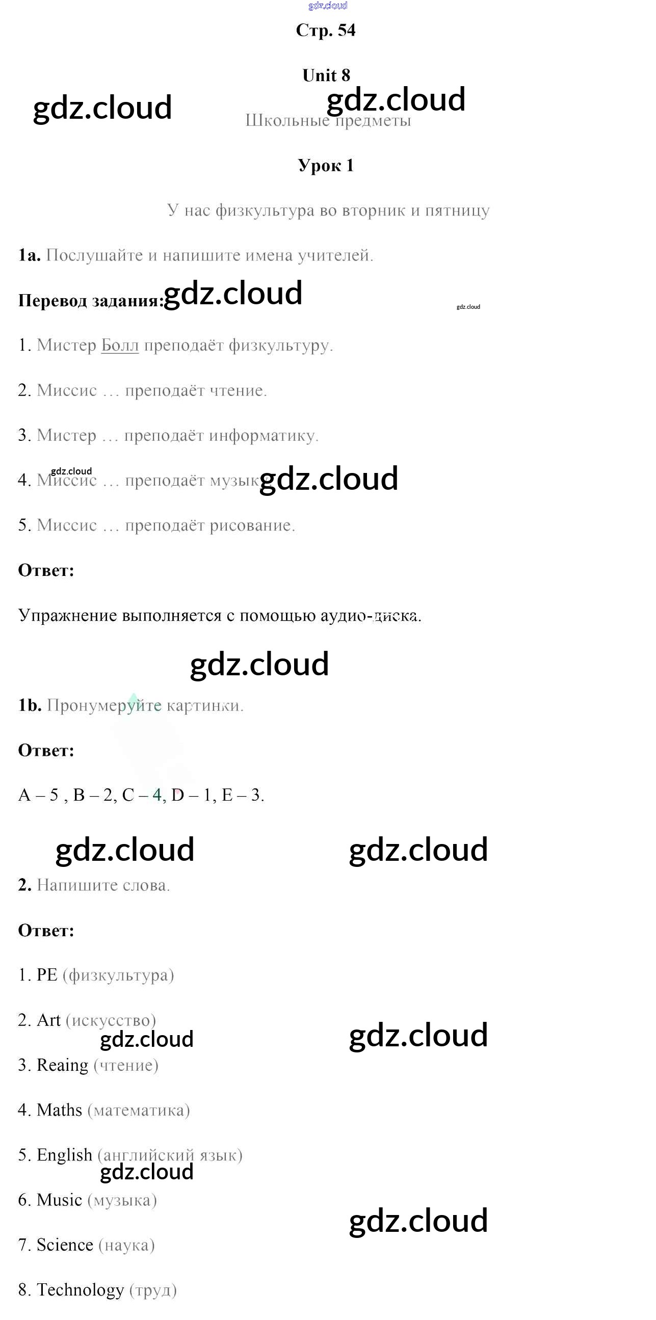 Ответ на задание стр.54 Рабочая тетрадь Английский язык за 4 (четвертый) класс Лапицкая, Калишевич, Севрюкова, Седунова 2019 Часть 1, 2