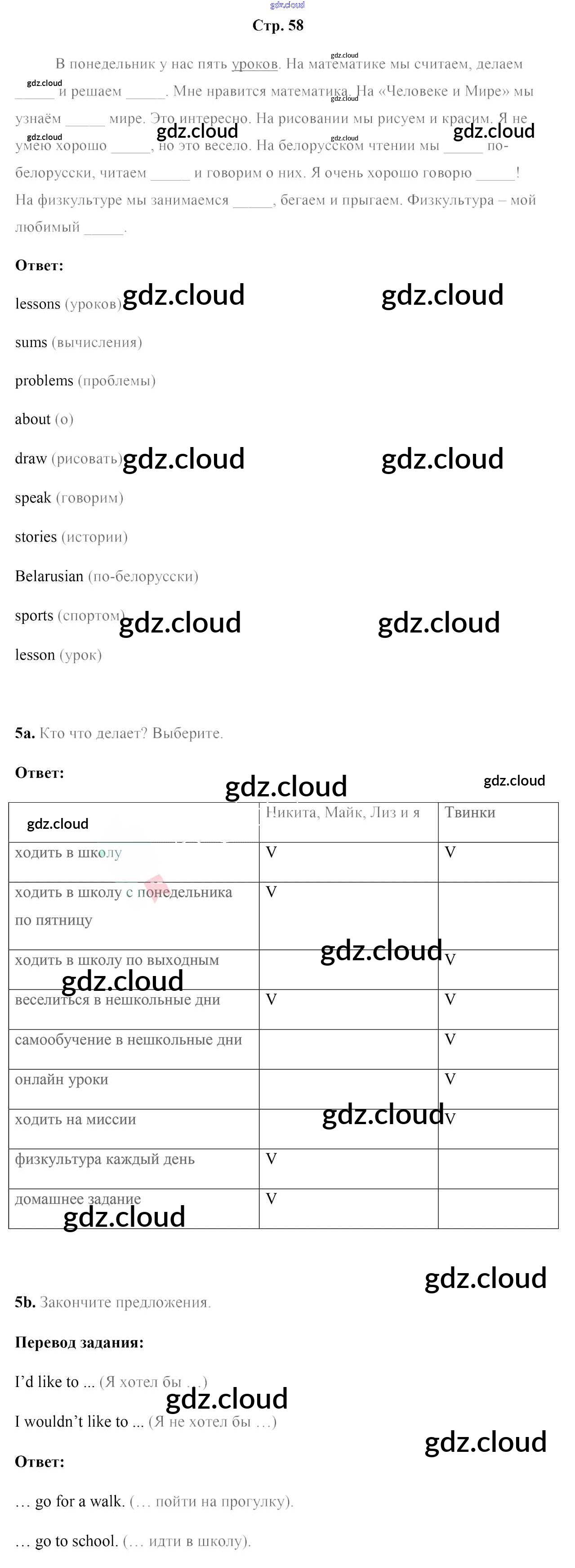 Ответ на задание стр.58 Рабочая тетрадь Английский язык за 4 (четвертый) класс Лапицкая, Калишевич, Севрюкова, Седунова 2019 Часть 1, 2