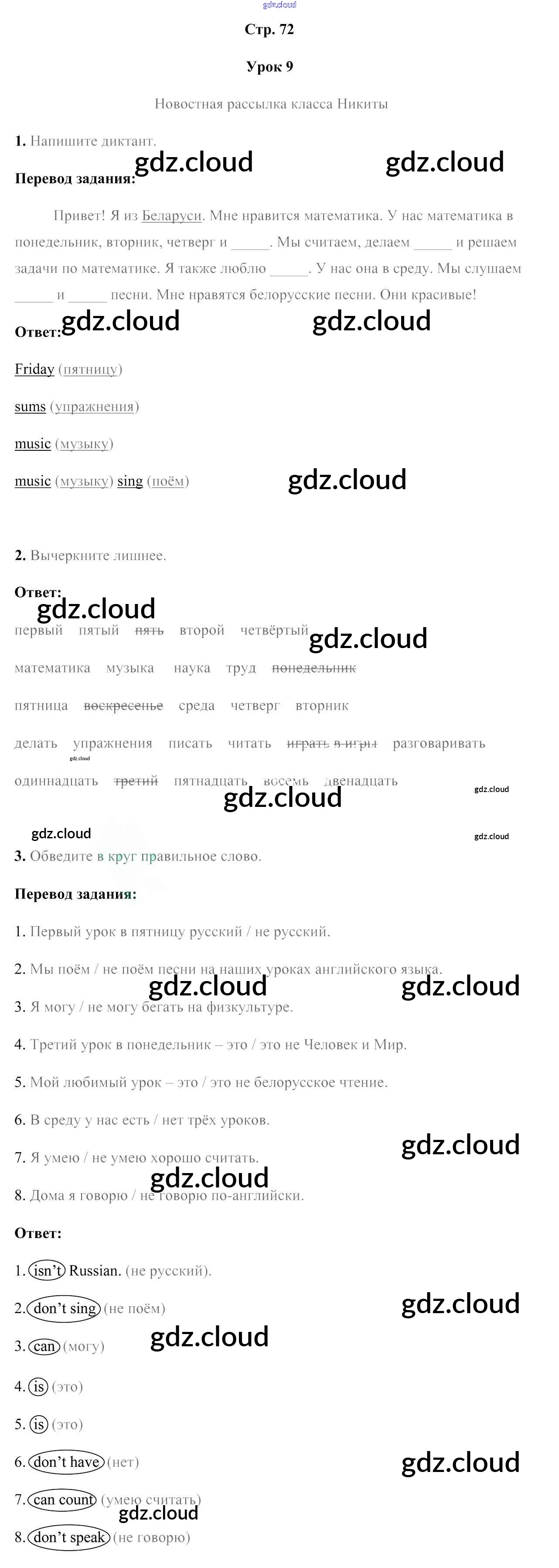 Ответ на задание стр.72 Рабочая тетрадь Английский язык за 4 (четвертый) класс Лапицкая, Калишевич, Севрюкова, Седунова 2019 Часть 1, 2