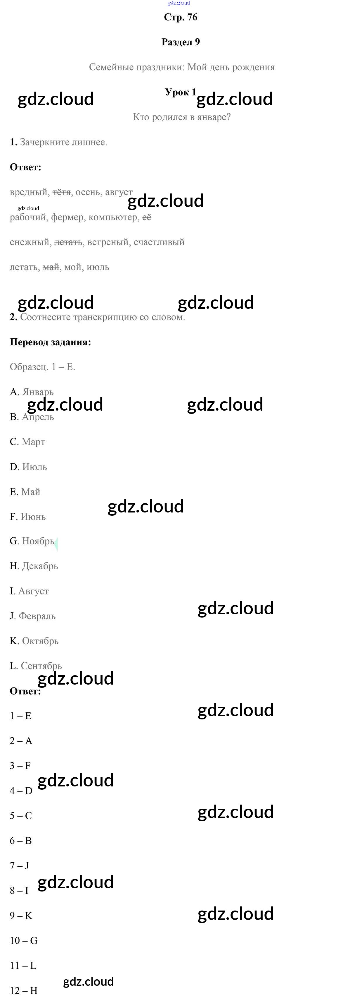 Ответ на задание стр.76 Рабочая тетрадь Английский язык за 4 (четвертый) класс Лапицкая, Калишевич, Севрюкова, Седунова 2019 Часть 1, 2