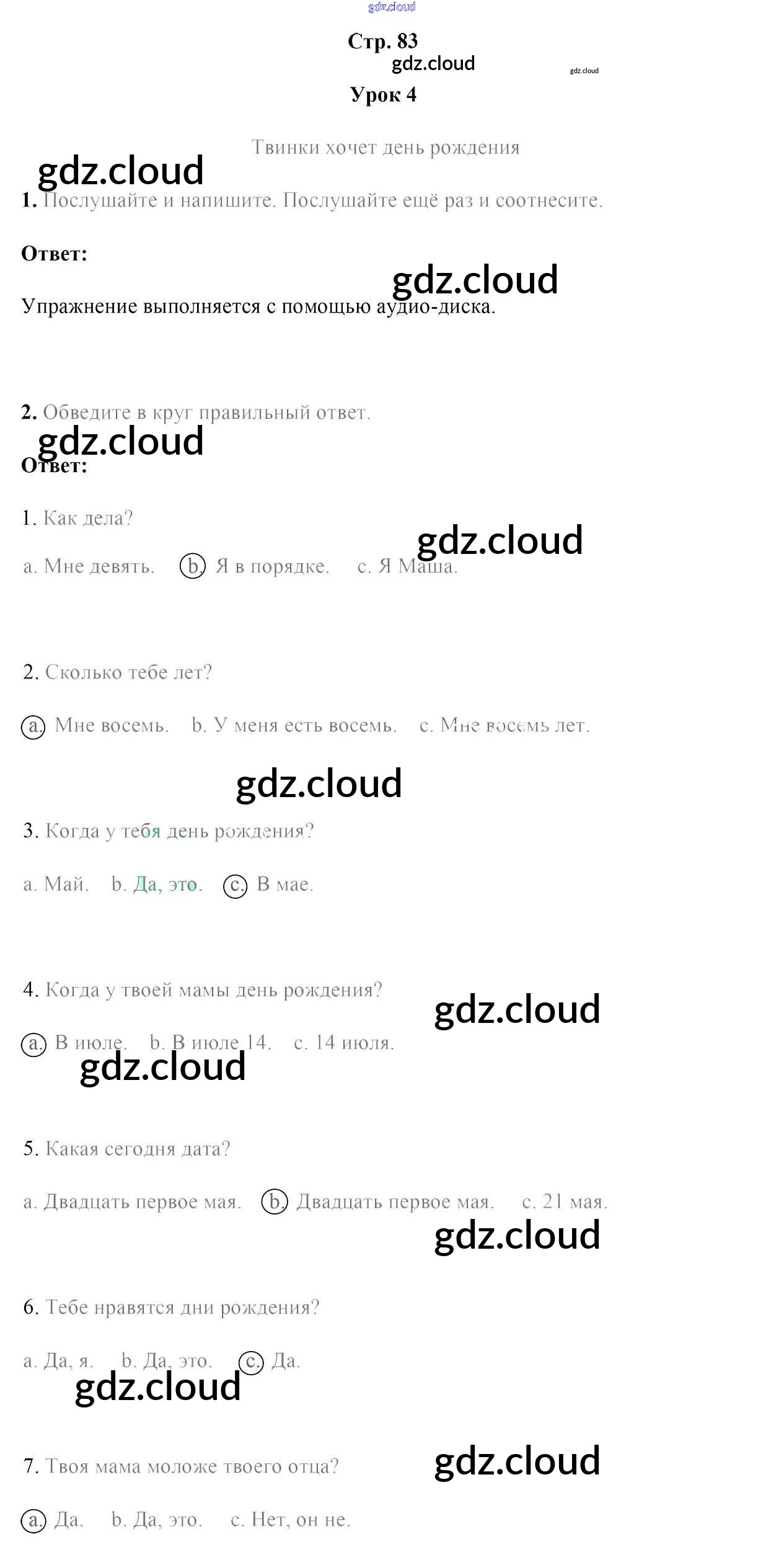 Ответ на задание стр.83 Рабочая тетрадь Английский язык за 4 (четвертый) класс Лапицкая, Калишевич, Севрюкова, Седунова 2019 Часть 1, 2