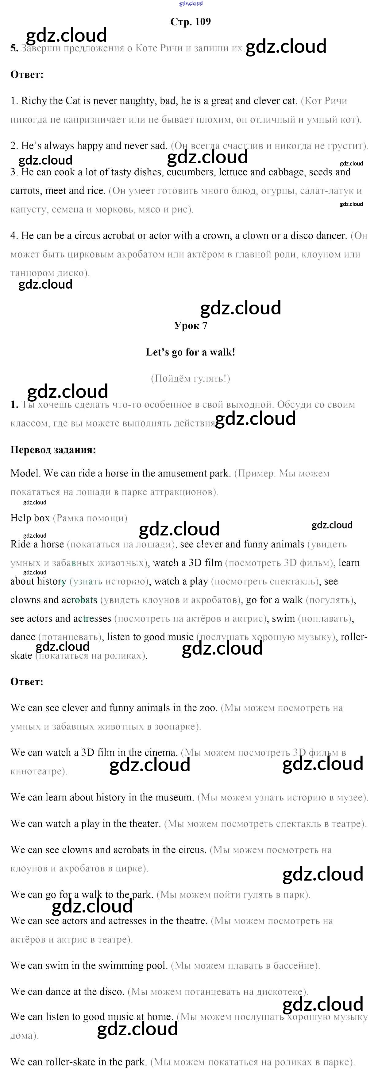 Ответ на задание стр.109 Учебник Английский язык за 4 (четвертый) класс Лапицкая, Севрюкова, Калишевич, Седунова 2019 Часть 1, 2