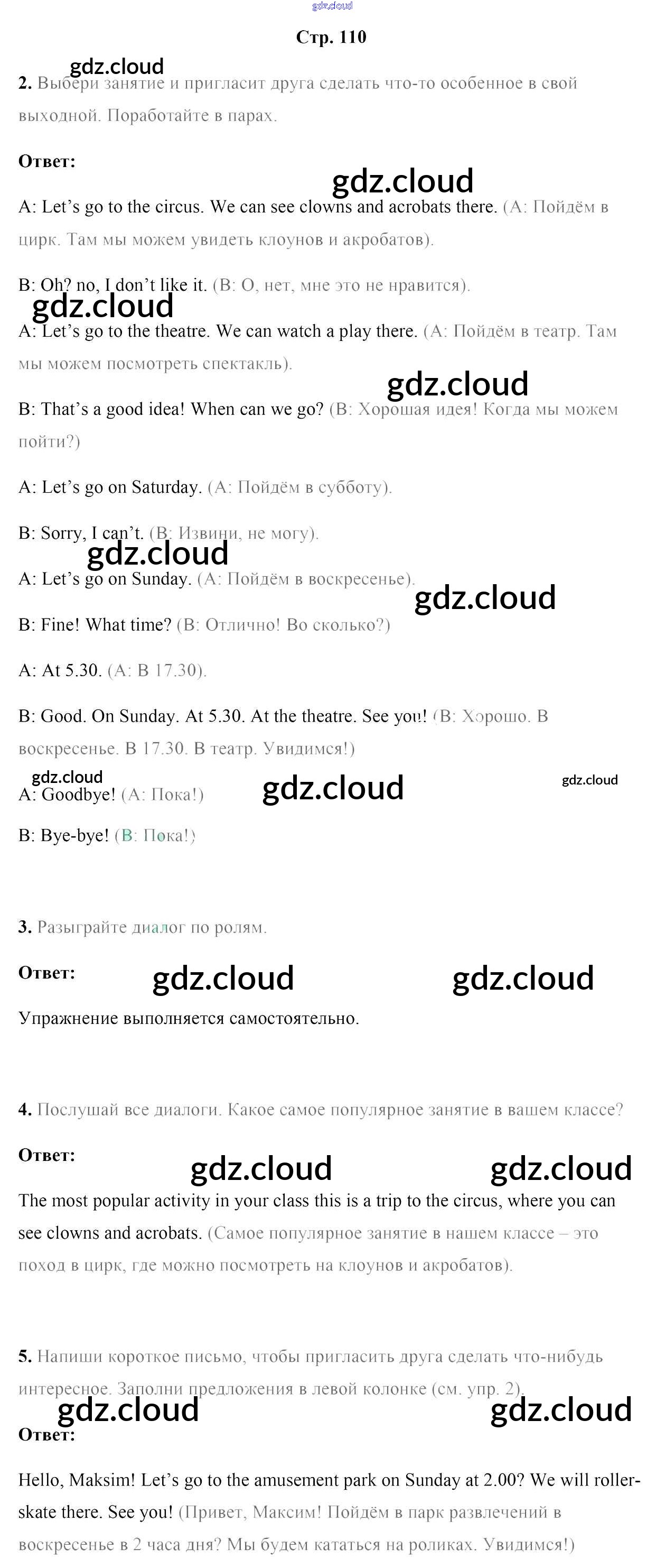 Ответ на задание стр.110 Учебник Английский язык за 4 (четвертый) класс Лапицкая, Севрюкова, Калишевич, Седунова 2019 Часть 1, 2