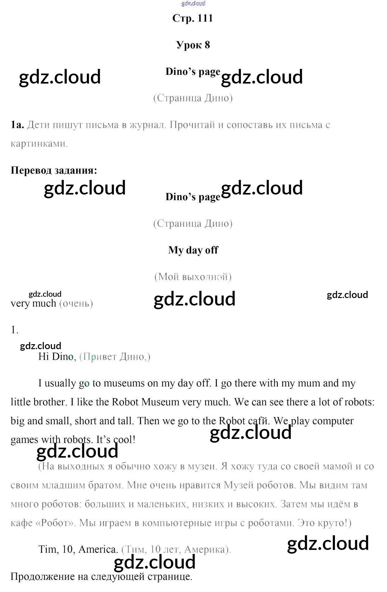Ответ на задание стр.111 Учебник Английский язык за 4 (четвертый) класс Лапицкая, Севрюкова, Калишевич, Седунова 2019 Часть 1, 2