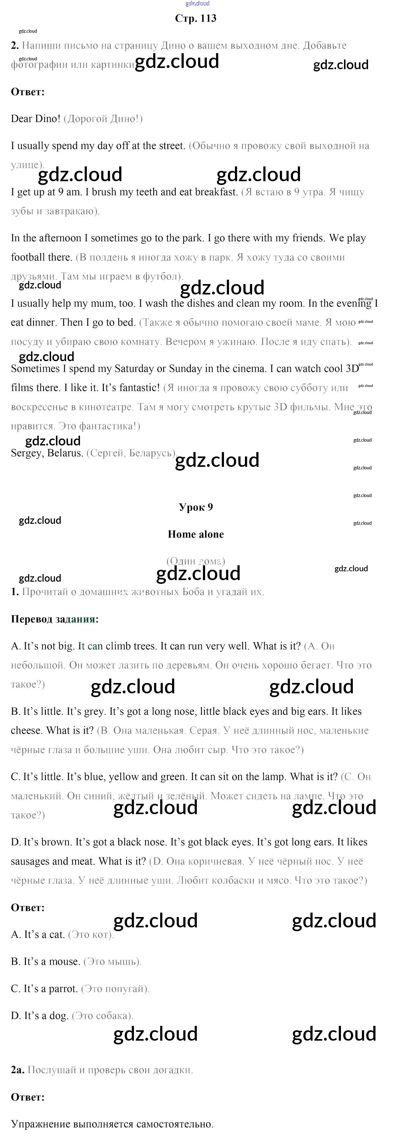 Ответ на задание стр.113 Учебник Английский язык за 4 (четвертый) класс Лапицкая, Севрюкова, Калишевич, Седунова 2019 Часть 1, 2