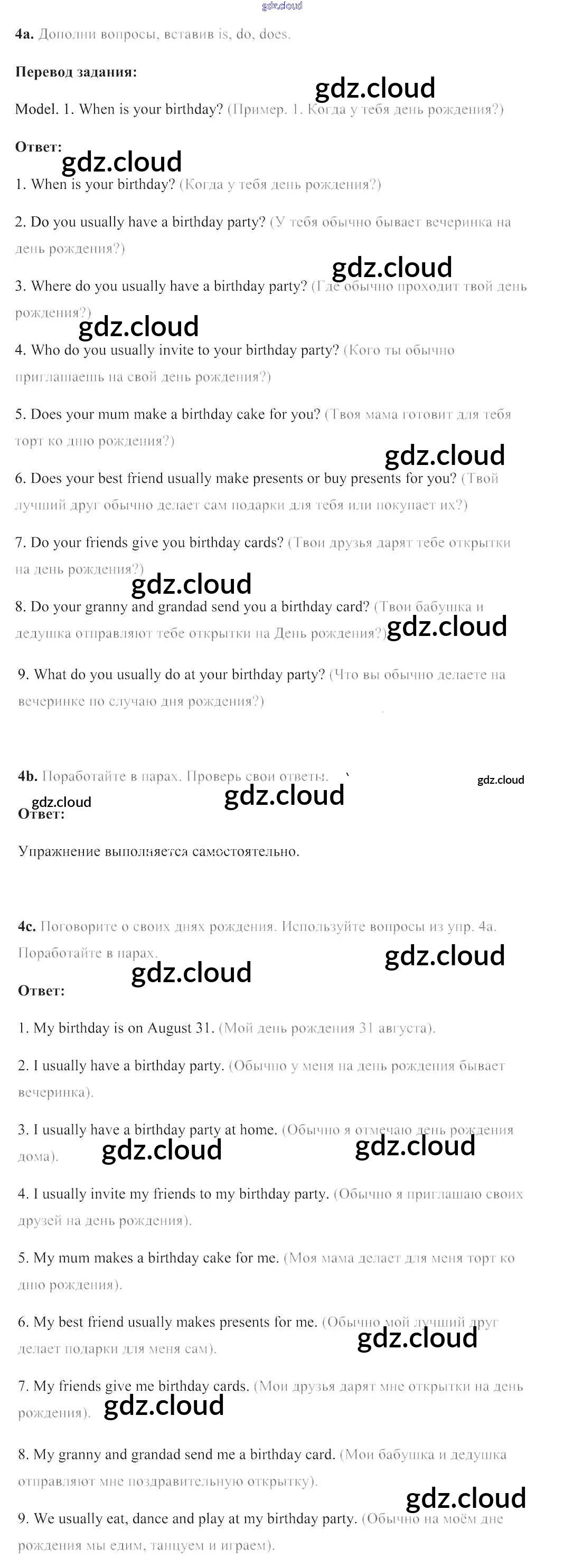 Ответ на задание стр.125 Учебник Английский язык за 4 (четвертый) класс Лапицкая, Севрюкова, Калишевич, Седунова 2019 Часть 1, 2