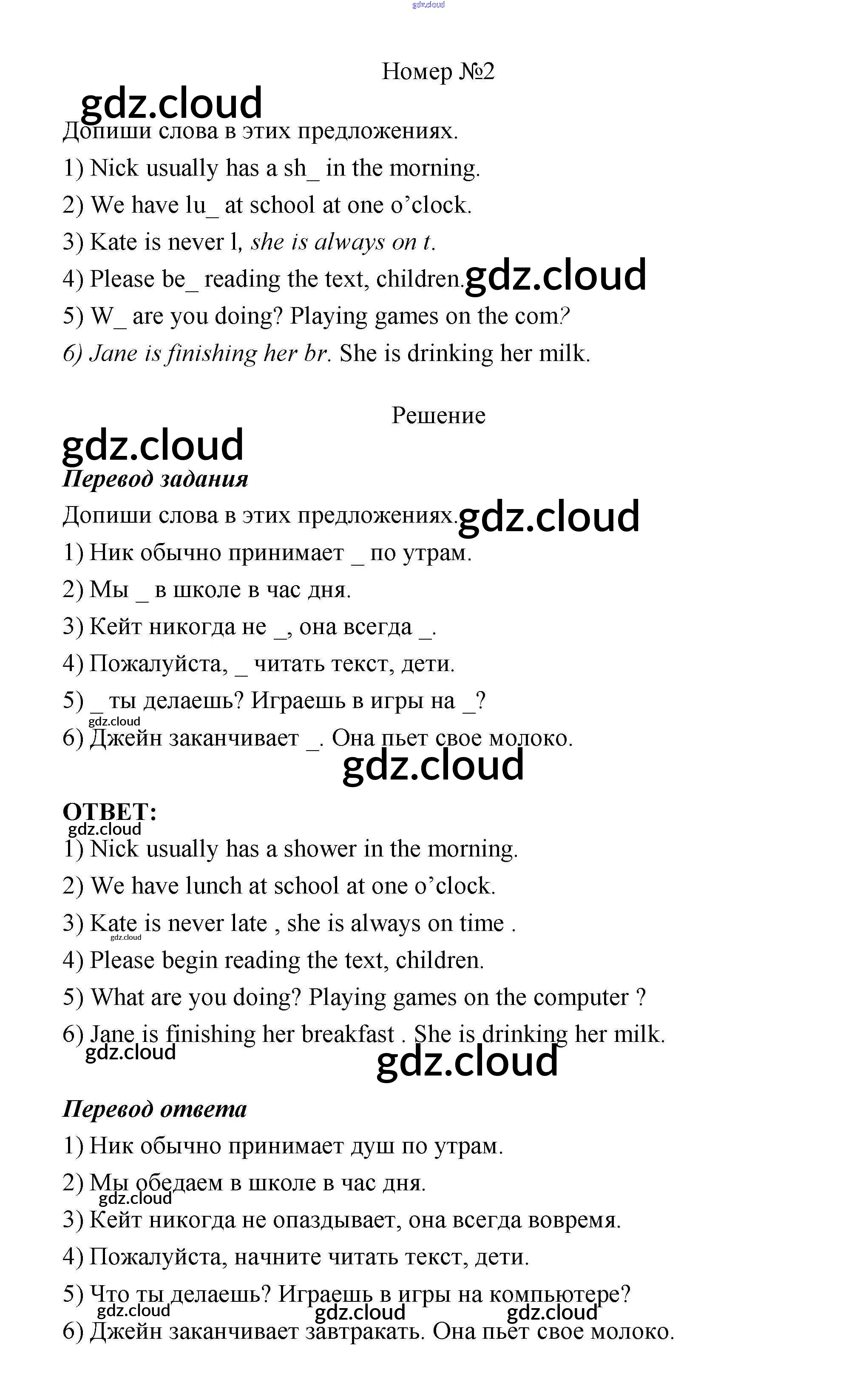 Ответ на задание 2 Рабочая тетрадь Английский язык за 4 (четвертый) класс Афанасьева, Михеева Rainbow 2016