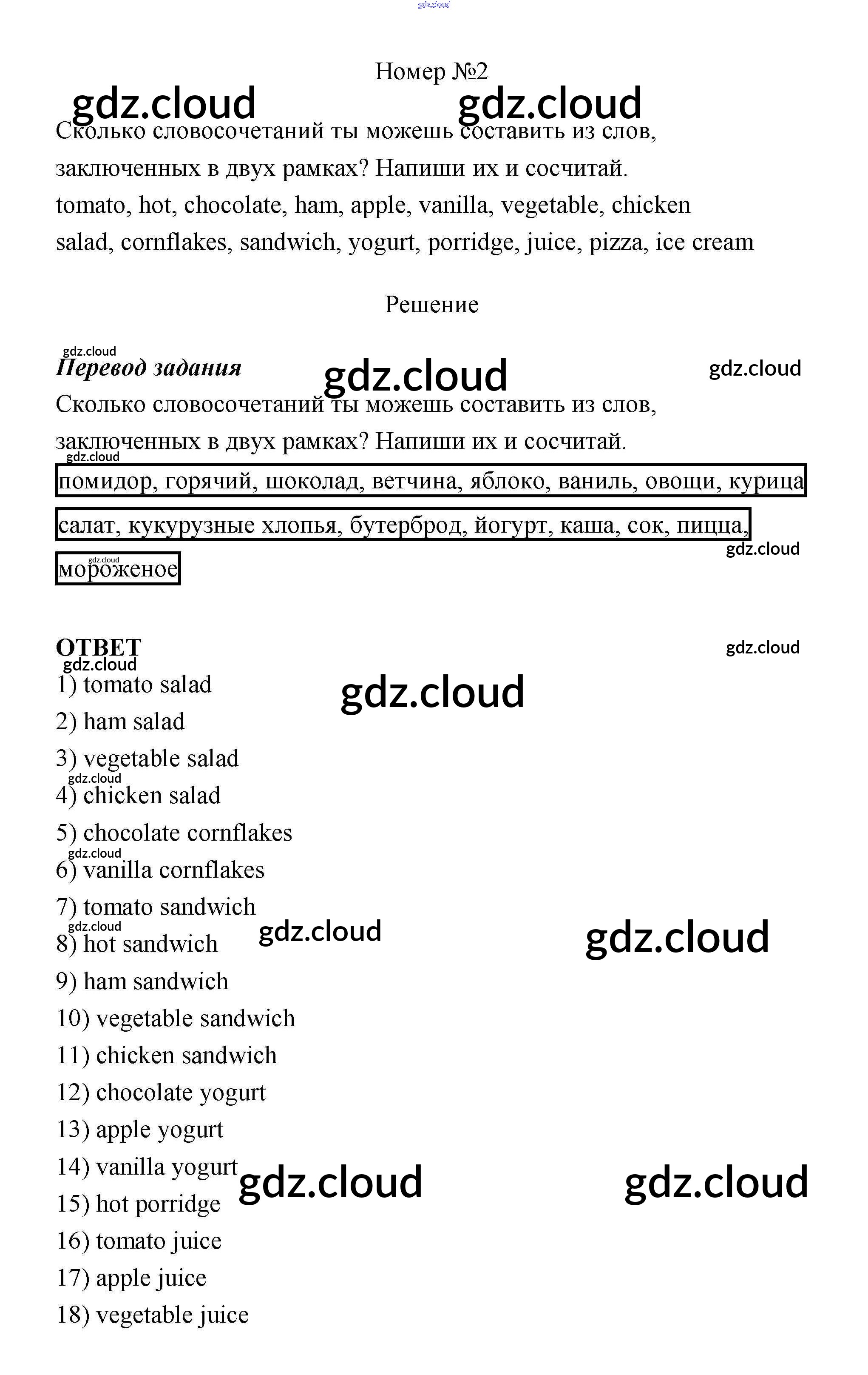 Ответ на задание 2 Рабочая тетрадь Английский язык за 4 (четвертый) класс Афанасьева, Михеева Rainbow 2016