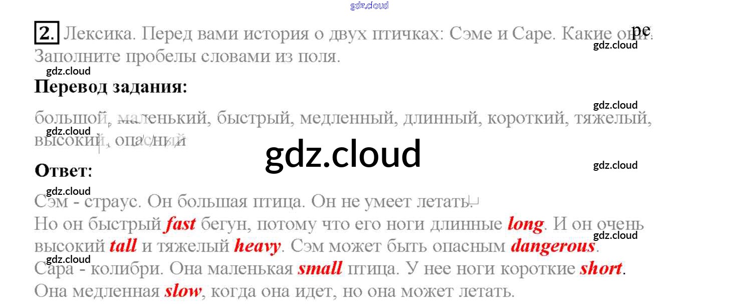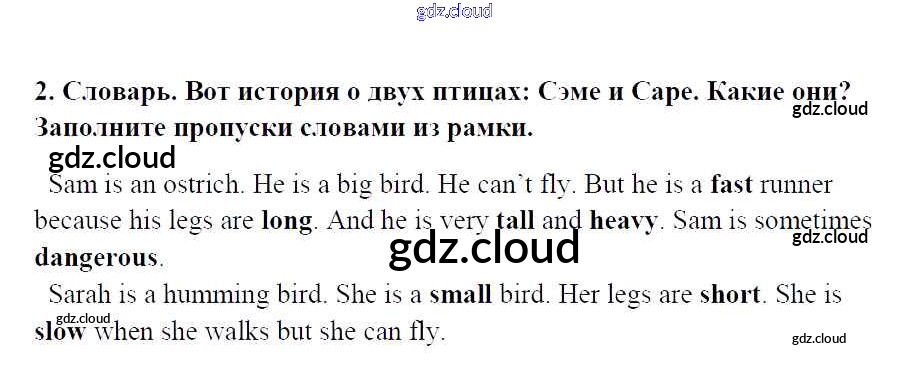 Ответ на задание 2 Рабочая тетрадь Английский язык  за 4 (четвертый) класс Кузовлев, Перегудова, Стрельникова   2013