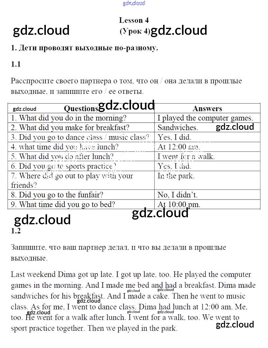 Lesson 4 Ответы к Unit 3 по Английскому языку 4 класс Рабочая тетрадь Кузовлев    Просвещение