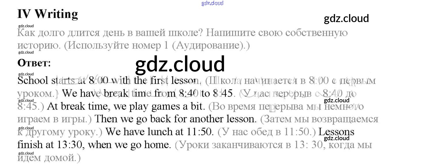 Ответ на задание Writing Рабочая тетрадь Английский язык  за 4 (четвертый) класс Кузовлев, Перегудова, Стрельникова   2013